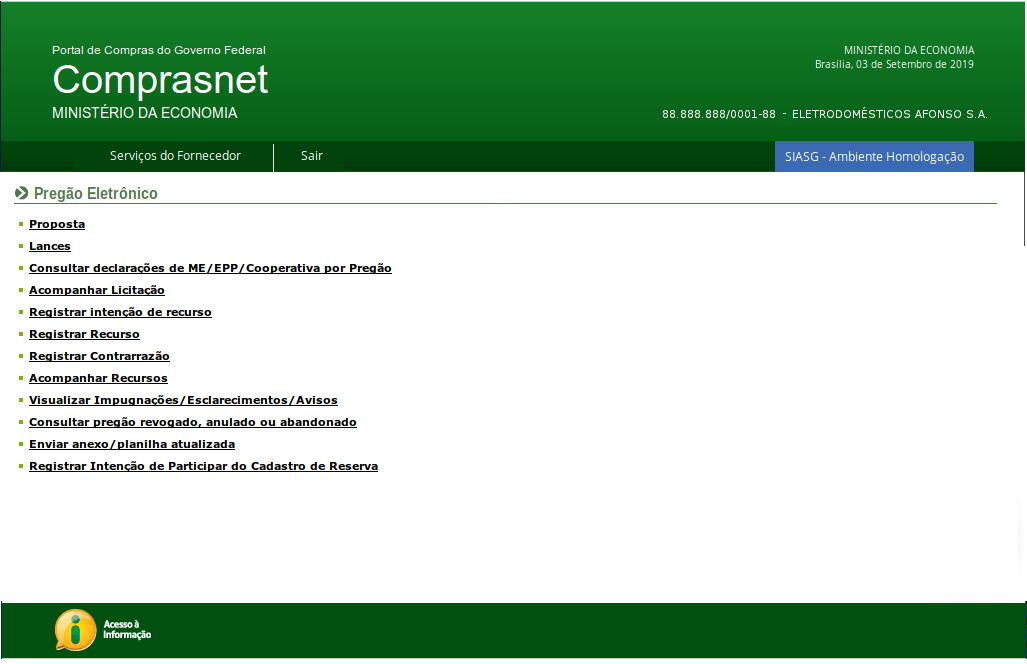 Salientamos que a sua identificação somente se torna publica, após a fase de aceitação. Até a fase de Lances, o autor da proposta não é identificada pelo Pregoeiro e/ou Equipe de Apoio.