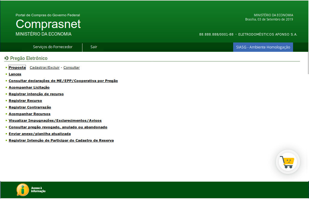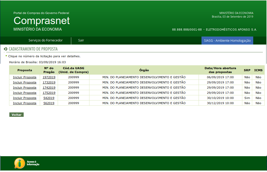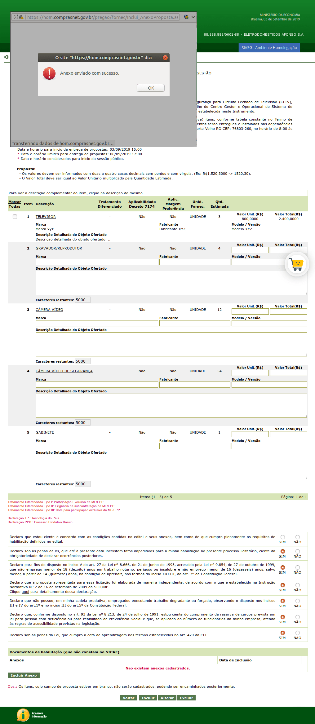 Atenção: Antes da abertura da sessão pública do Pregão Eletrônico, certifique-se da entrega de sua proposta e comprove a exatidão dos dados.