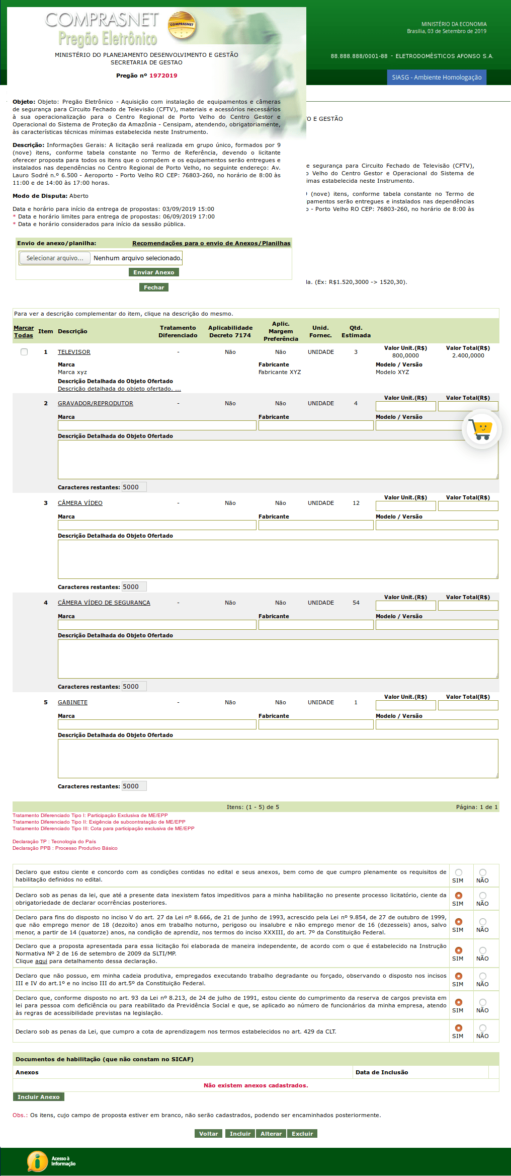 Lembre-se que na fase de Lances (Disputa), o valor ofertado será o valor total.