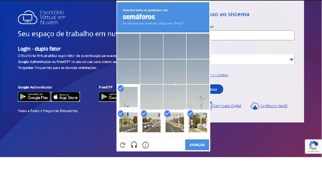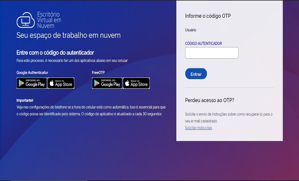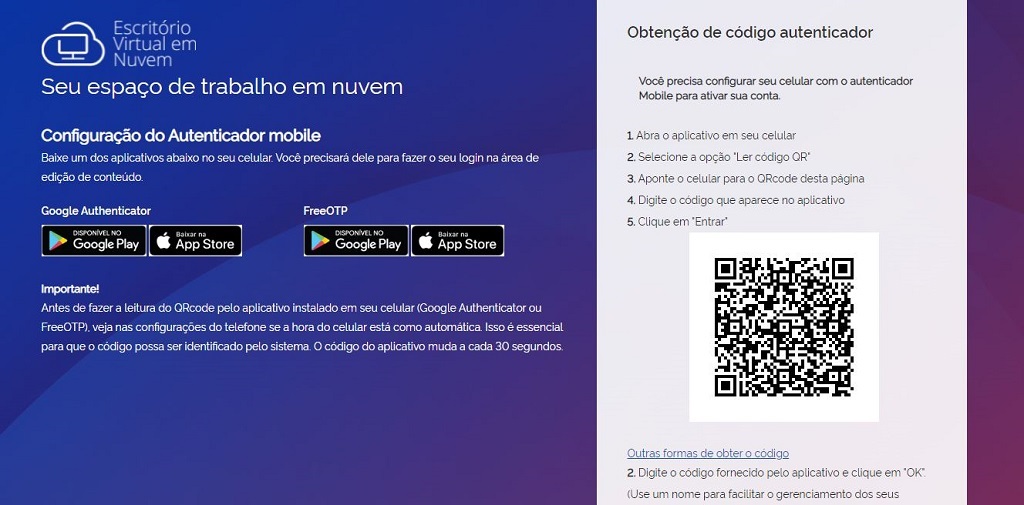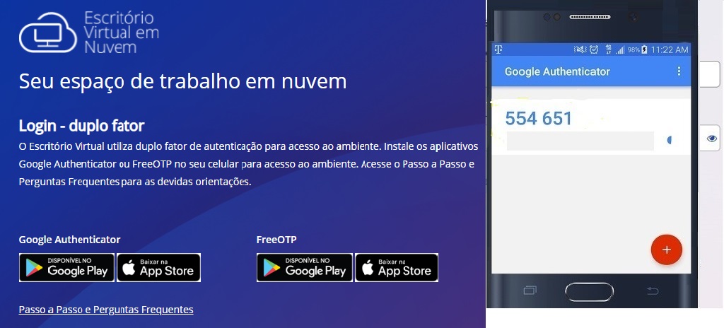 Ao digitalizar o QR Code, o Google Authenticator irá gerar o código validador que permitirá o acesso ao portal do Escritório Virtual em Nuvem.