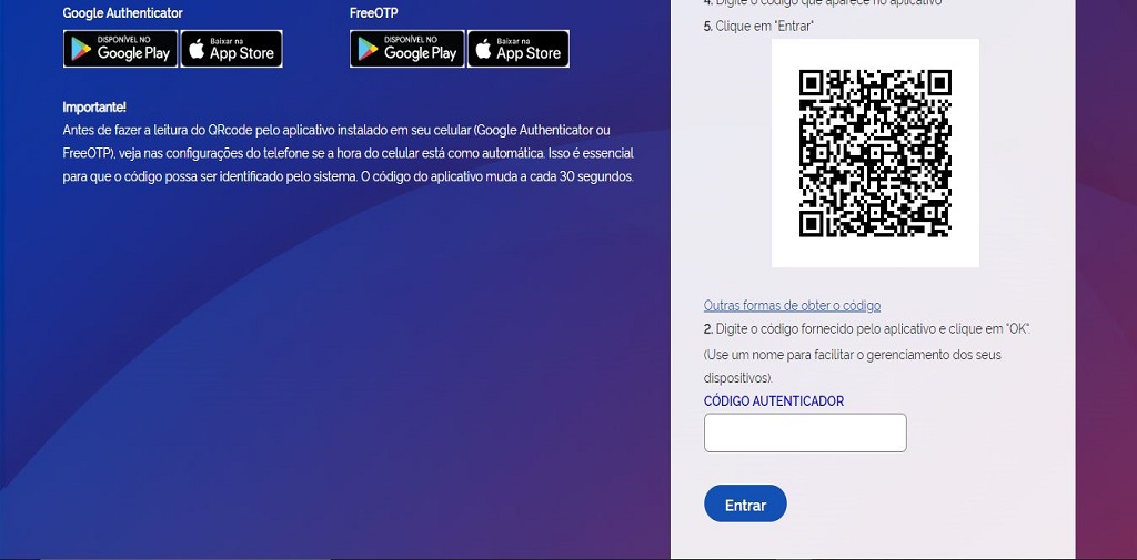No campo, "Código Autenticador", digite o código gerado pelo Google Authenticator.