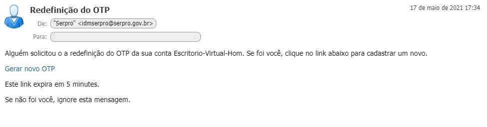 Acesse o e-mail e clique no link "Gerar novo OTP".