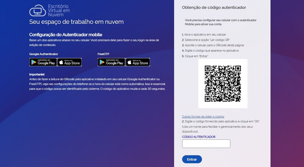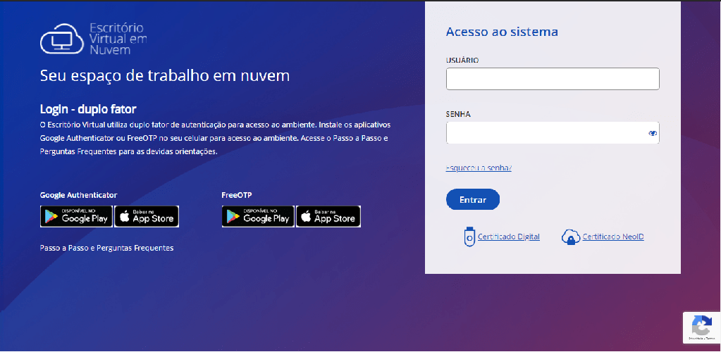 No portal do Escritório Virtual em Nuvem, entre com as credenciais de acesso.