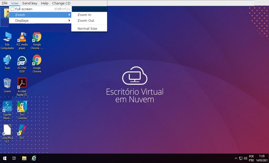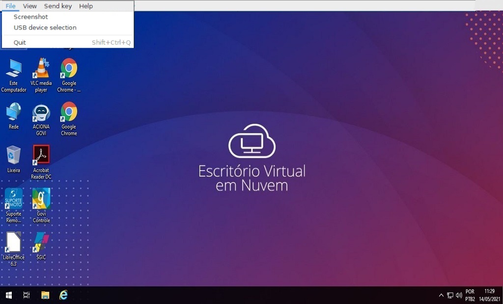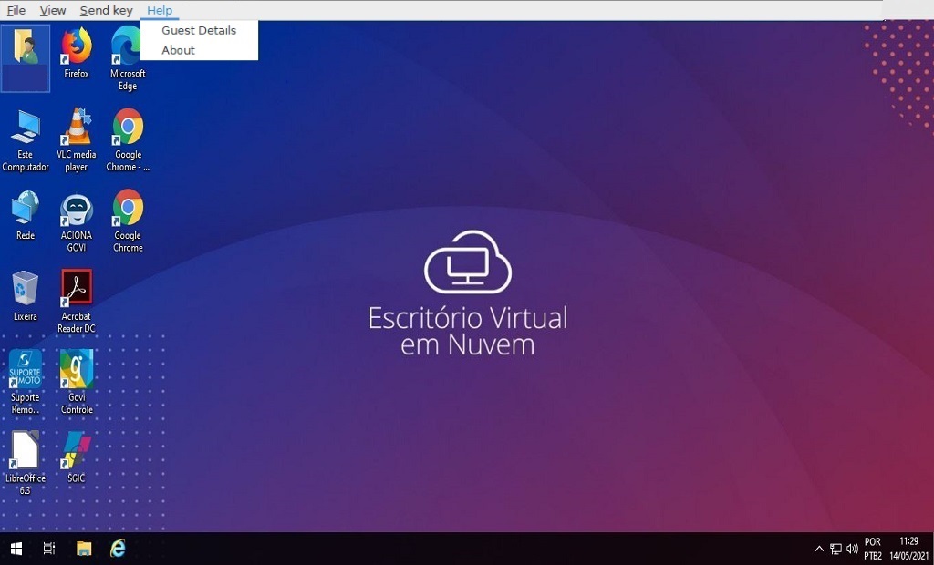 No menu Help é possível obter maiores informações a respeito do Virt-Viewer.