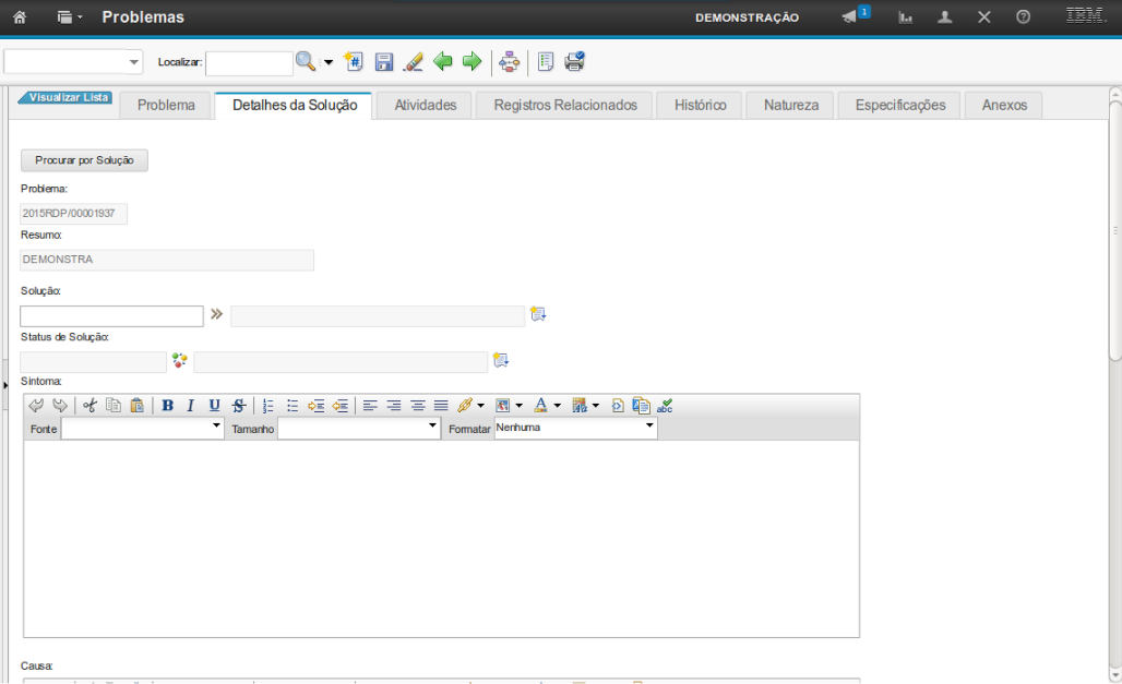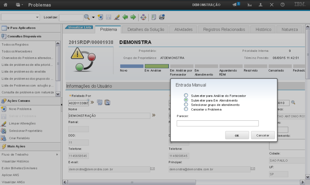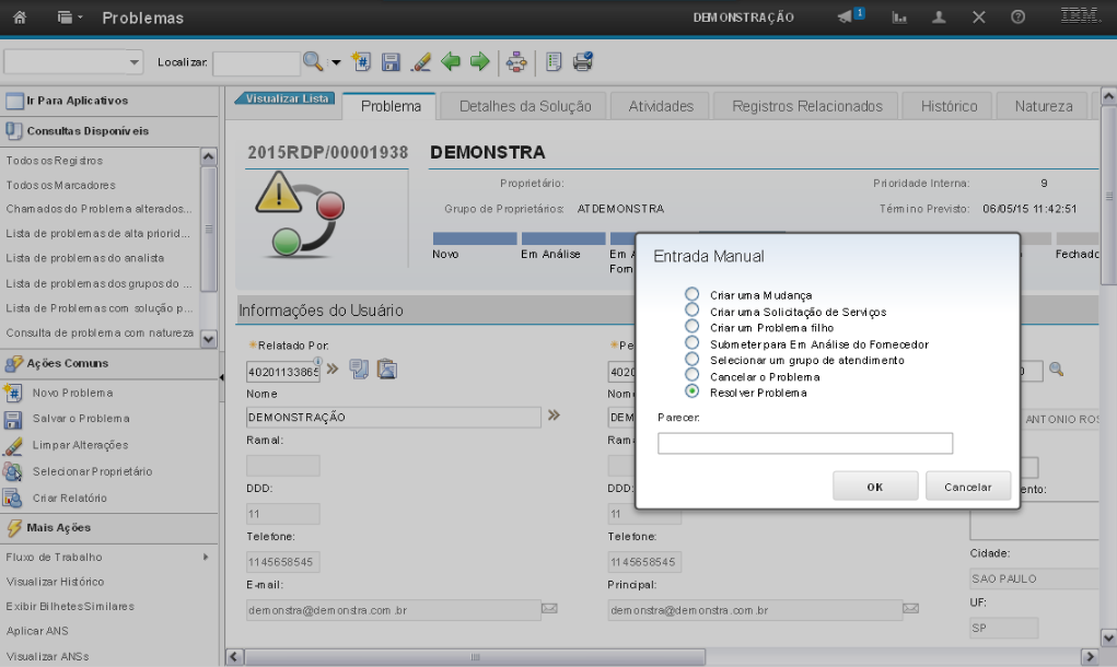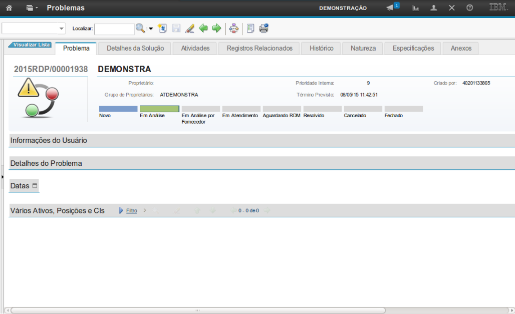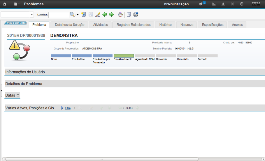 O atendimento ao Registro de Problema obedece o ciclo de vida do processo, onde o registro passará por cada status, dependendo do contexto ao qual será submetido naquele determinado instante.