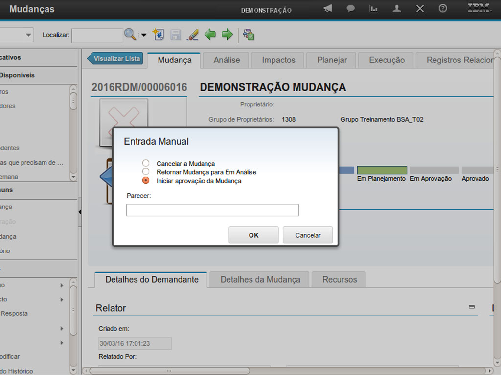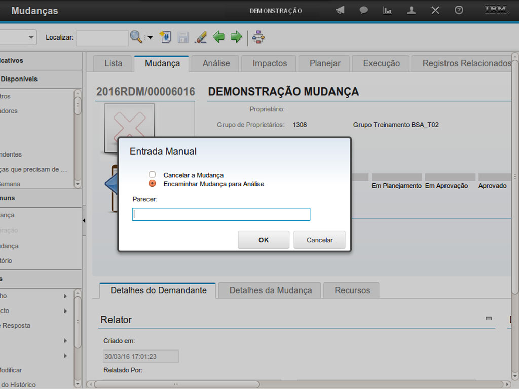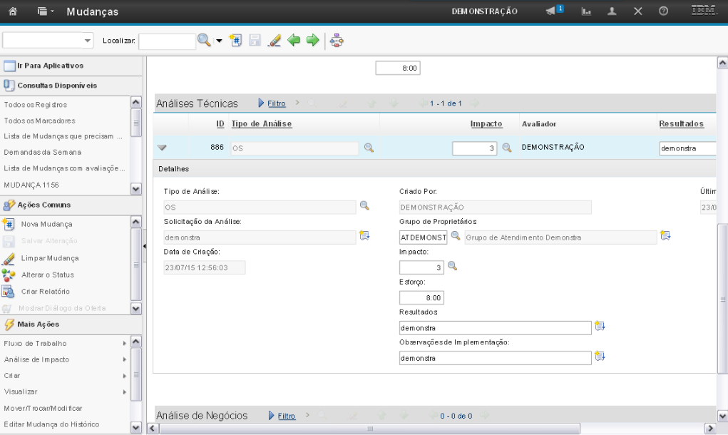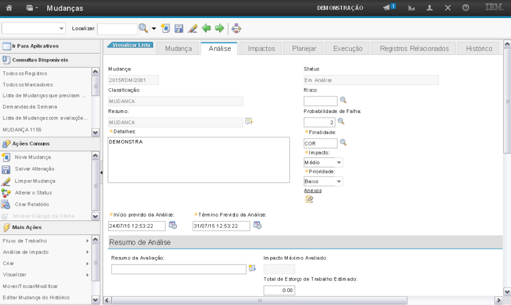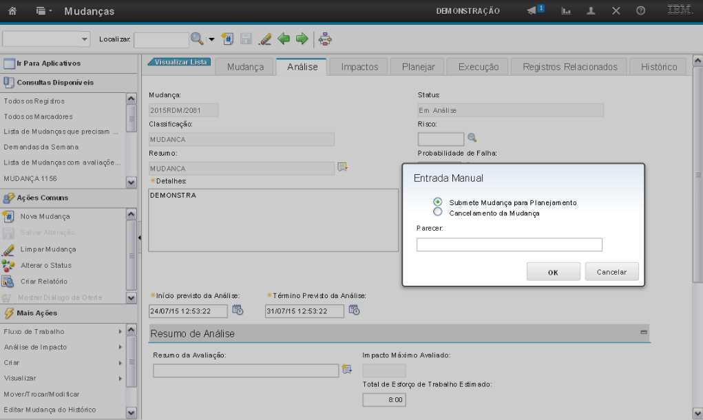 Sendo assim, o gestor de mudança poderá concluir a análise da mudança. Para isto, deve adentrar novamente na RDM.