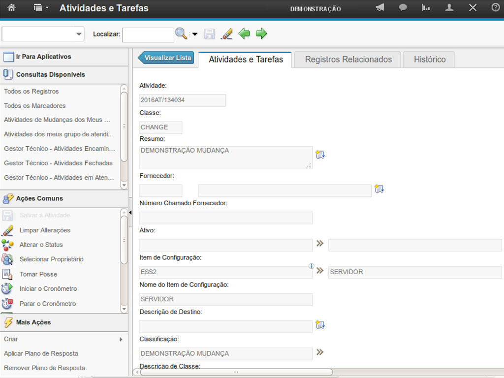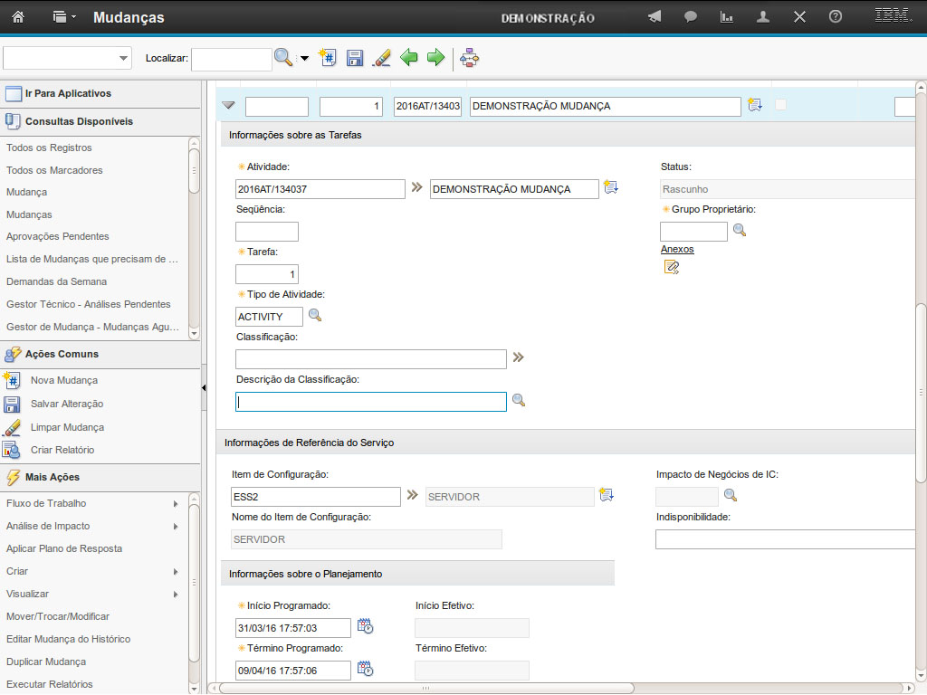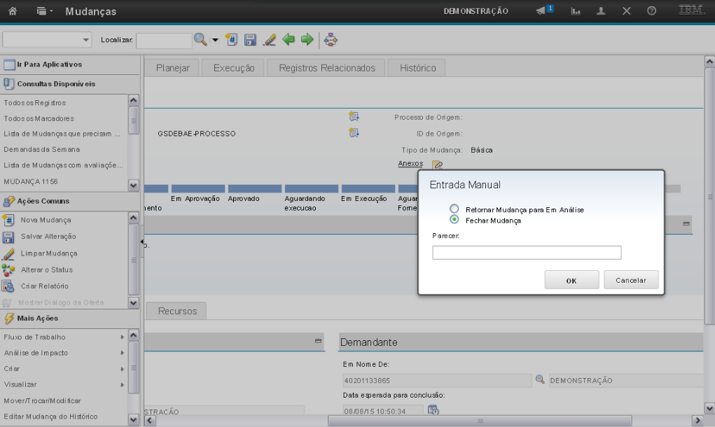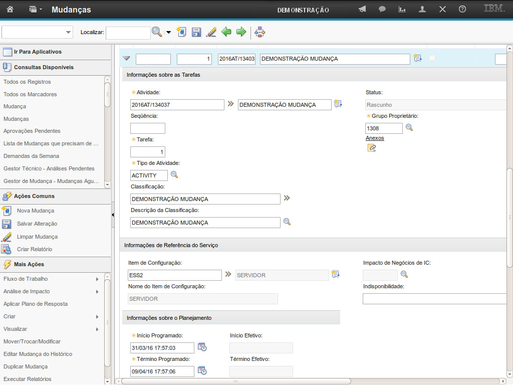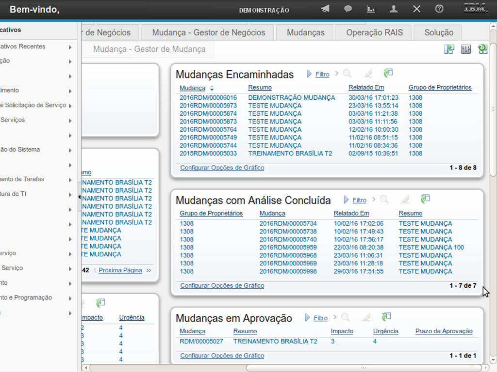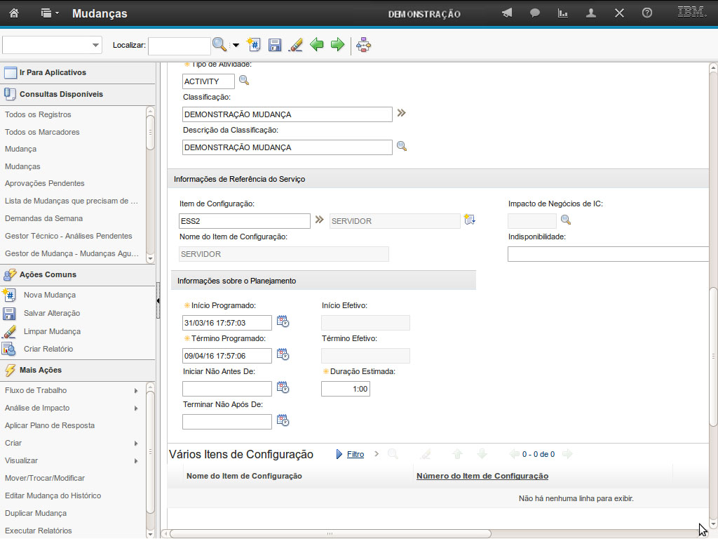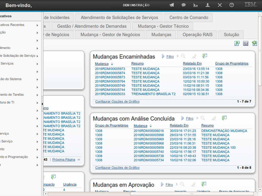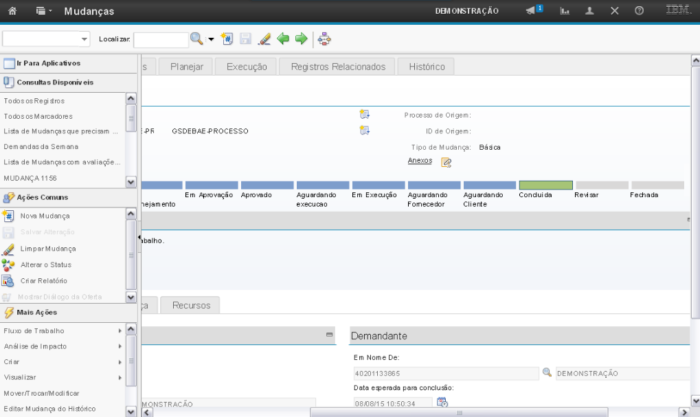 Esta foi a demonstração sobre como atender a mudança, desde seu encaminhamento para a gestão de mudança até sua finalização.