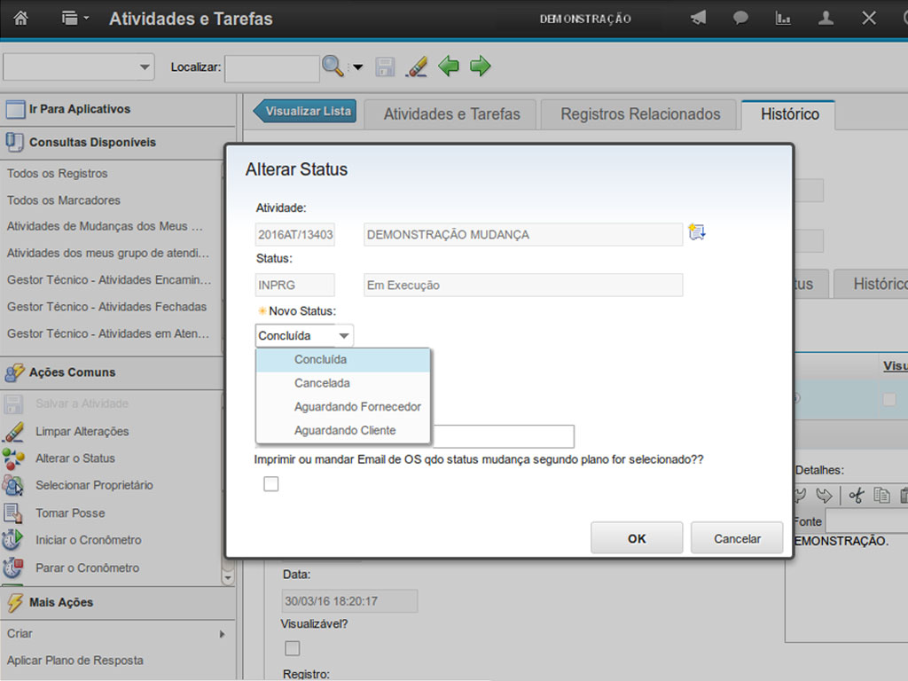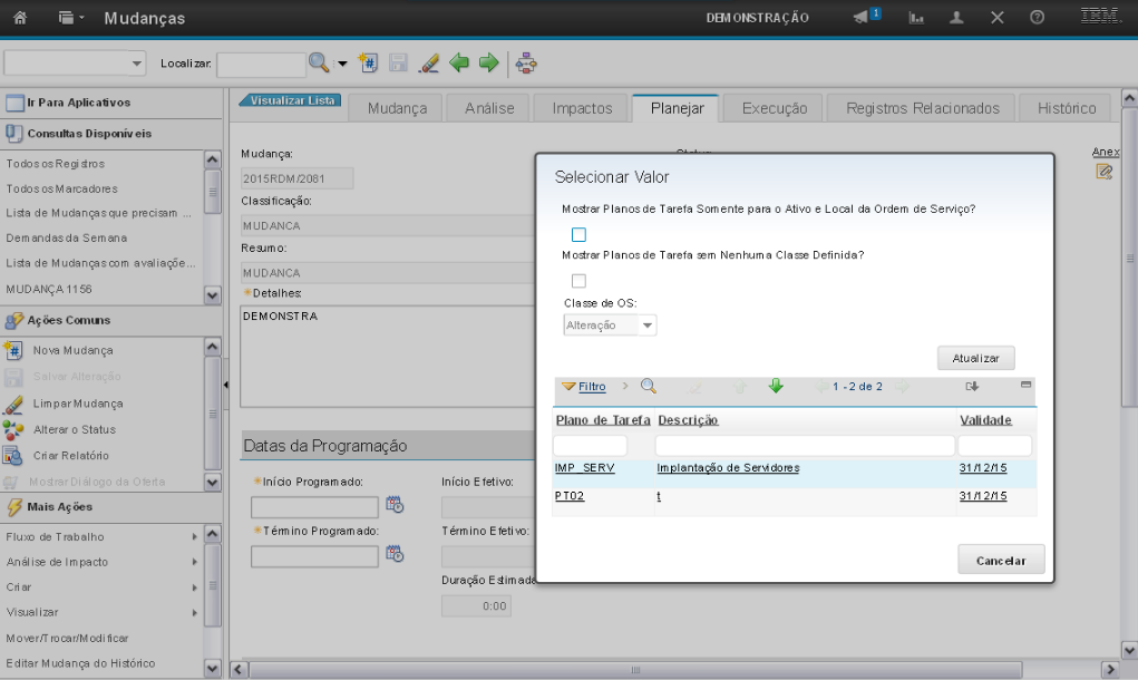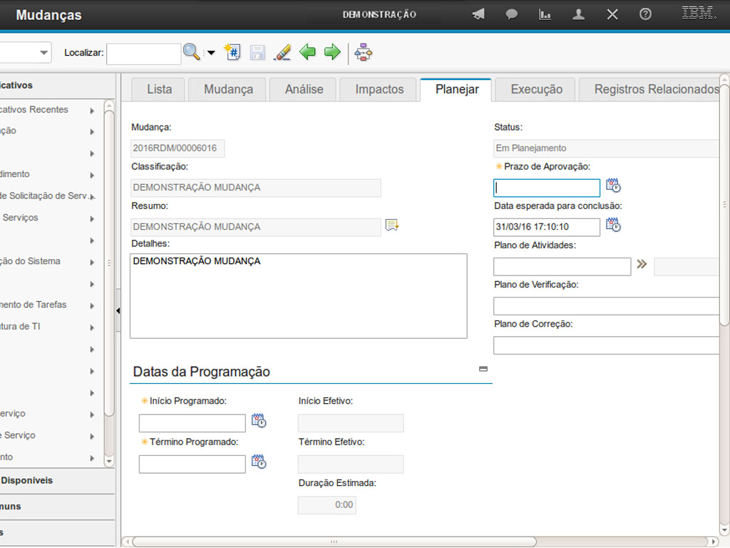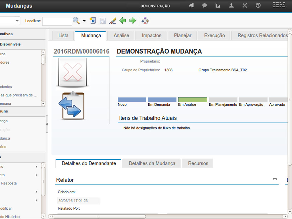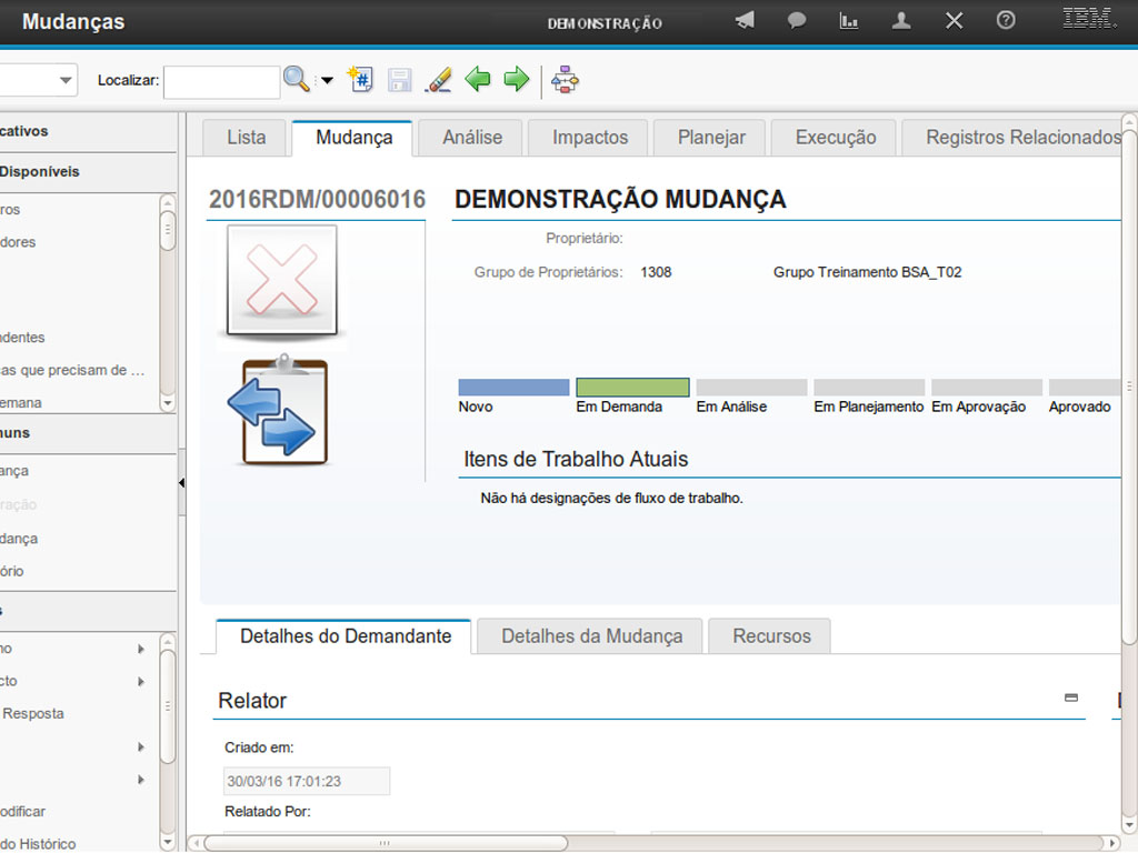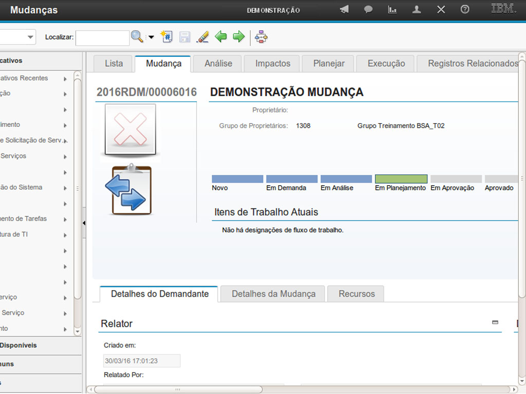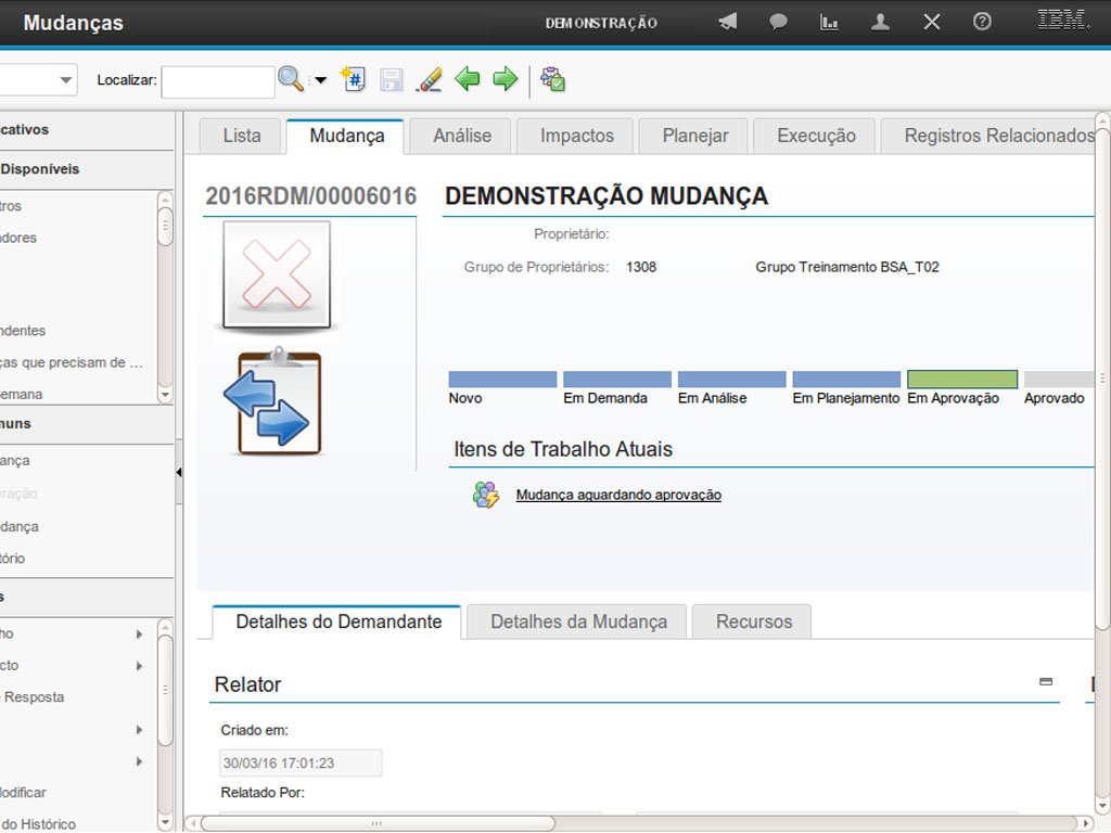 Esta foi a demonstração sobre como atender a mudança, desde seu encaminhamento para a gestão de mudança até sua finalização.