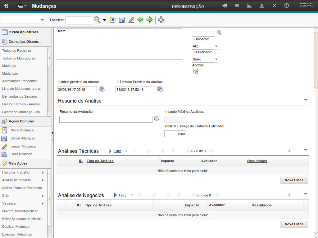 Importante ressaltar que o Impacto da mudança será igual ao Impacto da análise técnica que possuir o maior valor.