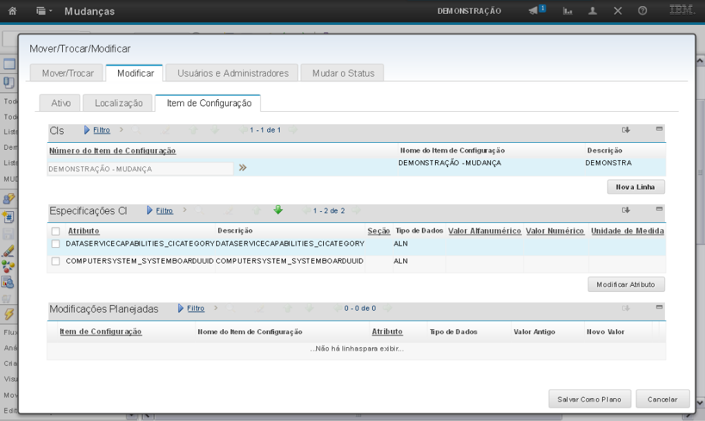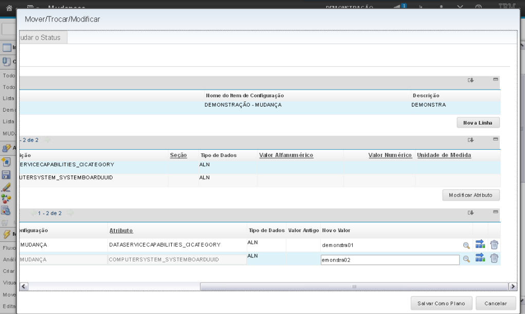 Por padrão o IC principal da mudança é automaticamente vinculado a este campo, mas caso necessário o gestor pode alterar o campo.