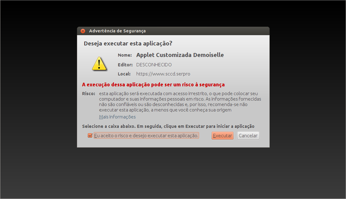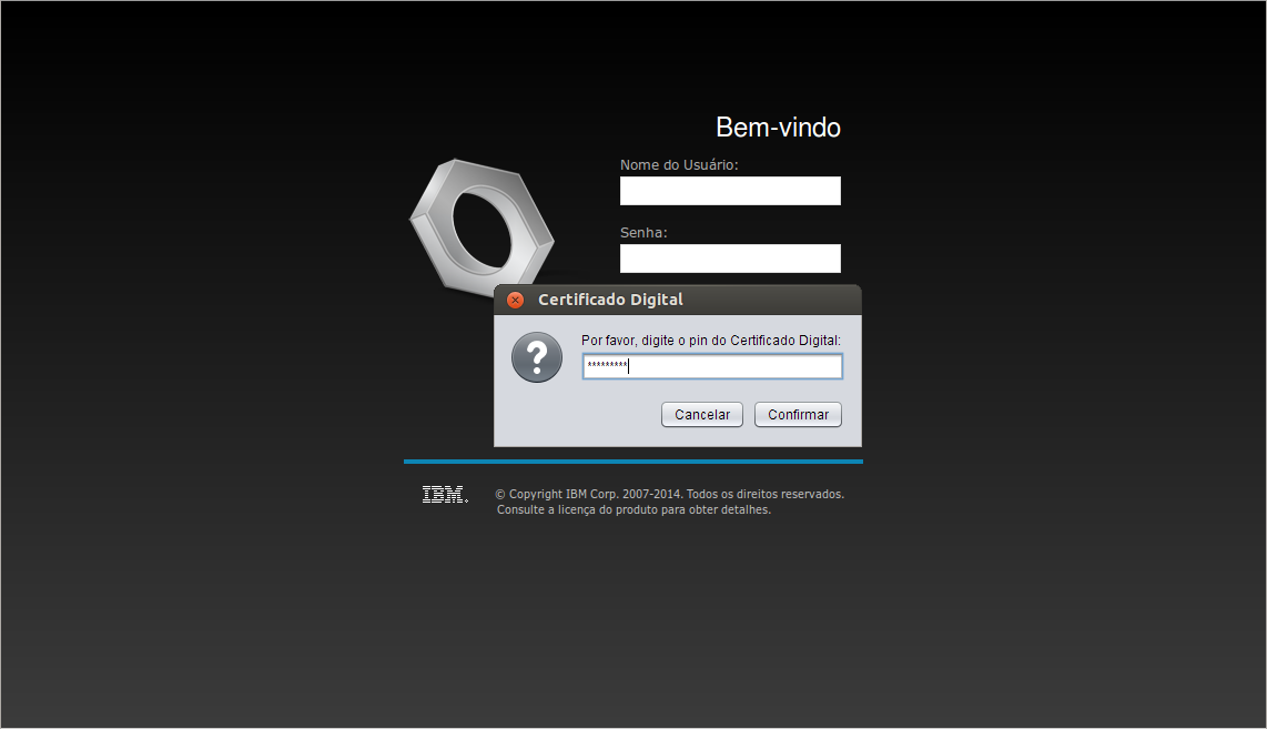 No campo apropriado digite o código PIN do seu certificado digital.