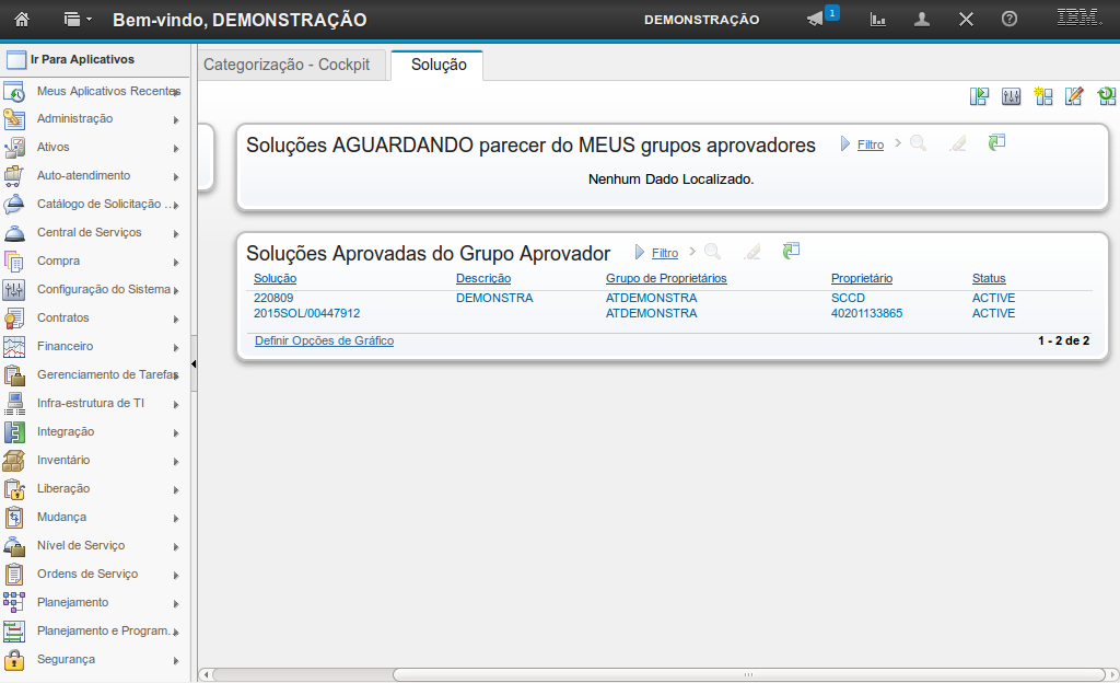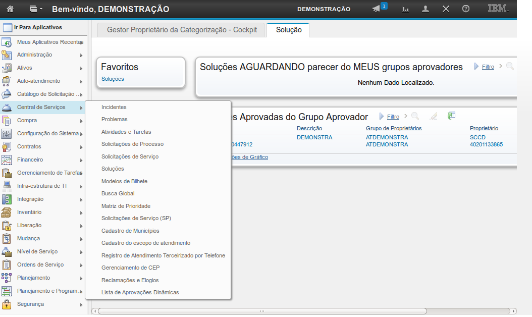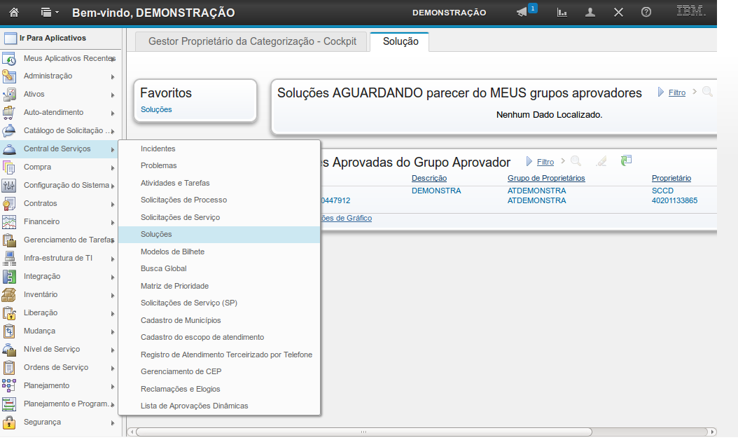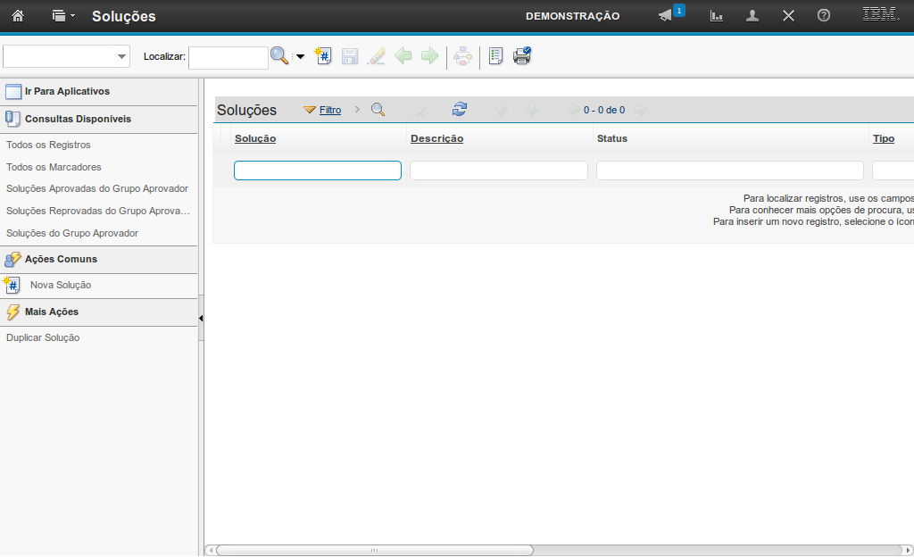 Lembrando que você só terá acesso ao Centro de Início de solução se o seu perfil de usuário estiver relacionado com a aplicação "Solução".