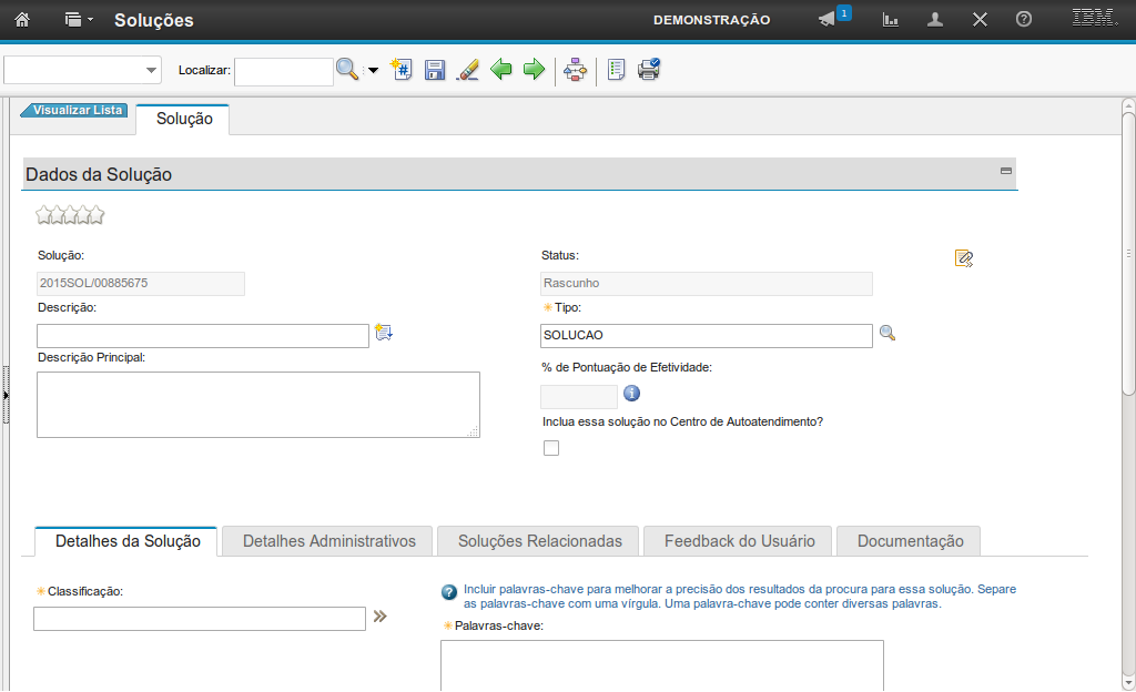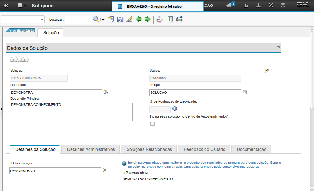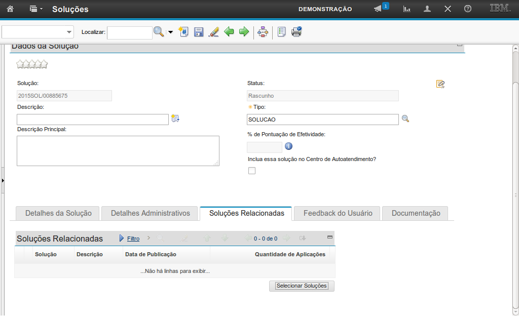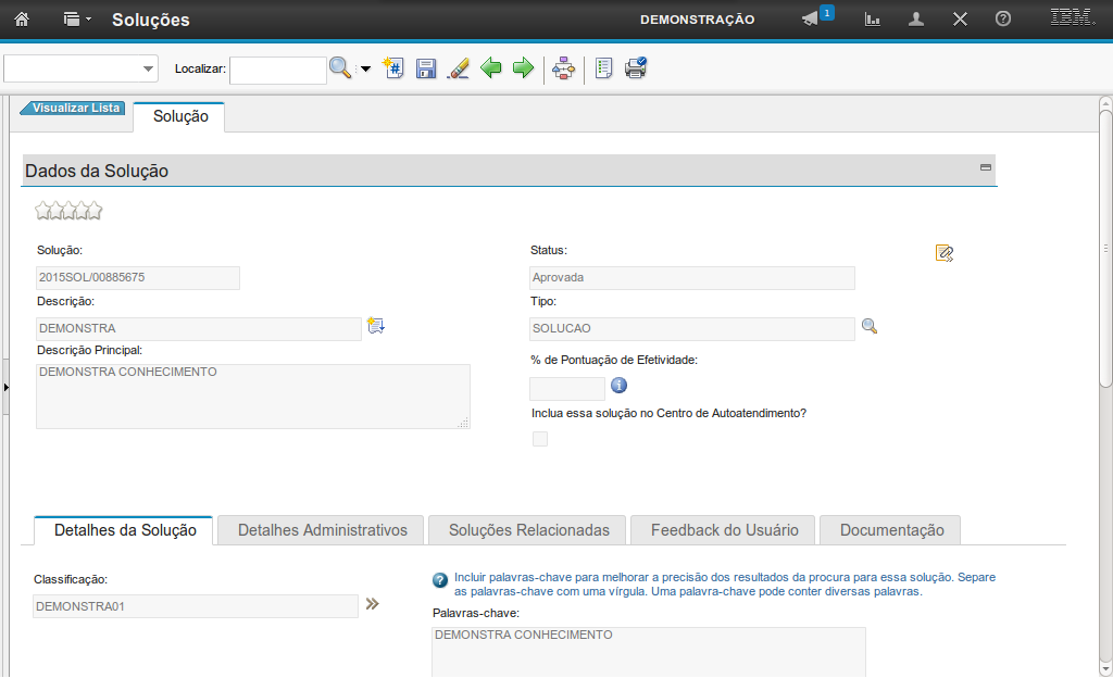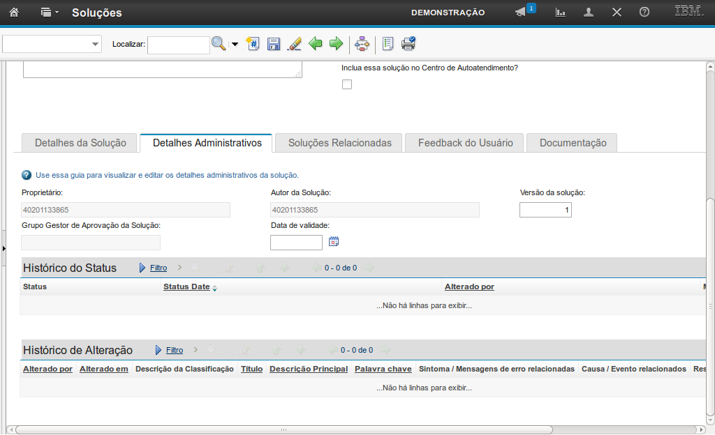 - Aprovado: a solução foi aprovada e está apta para ser usada em incidentes, solicitações de serviço ou registros de problema.