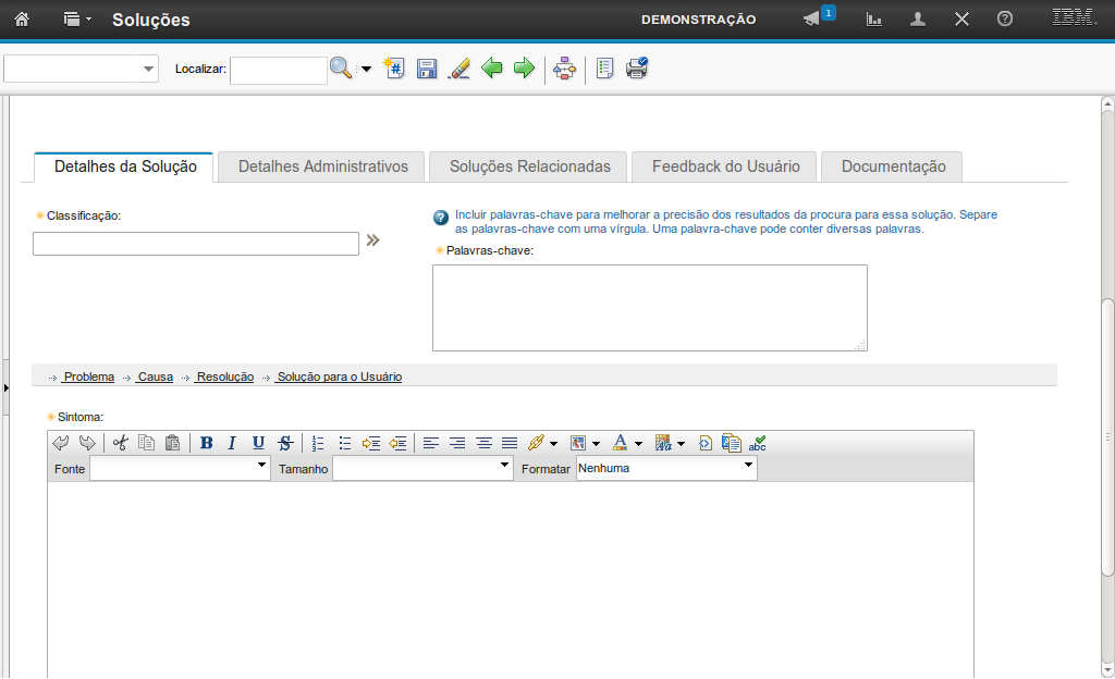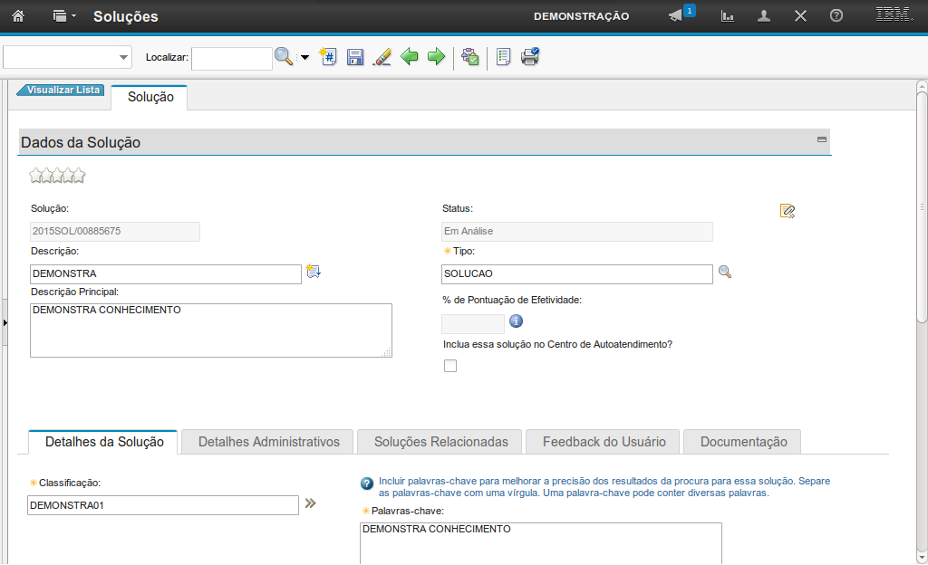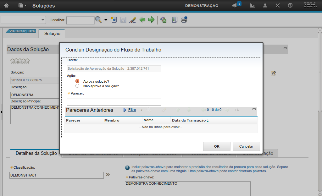 - Em Análise: a solução está sob a análise do Grupo Aprovador, onde será definida a sua validade ou descarte