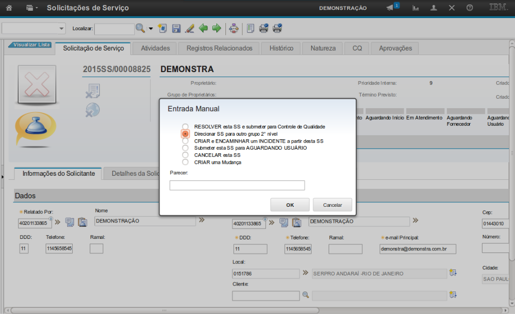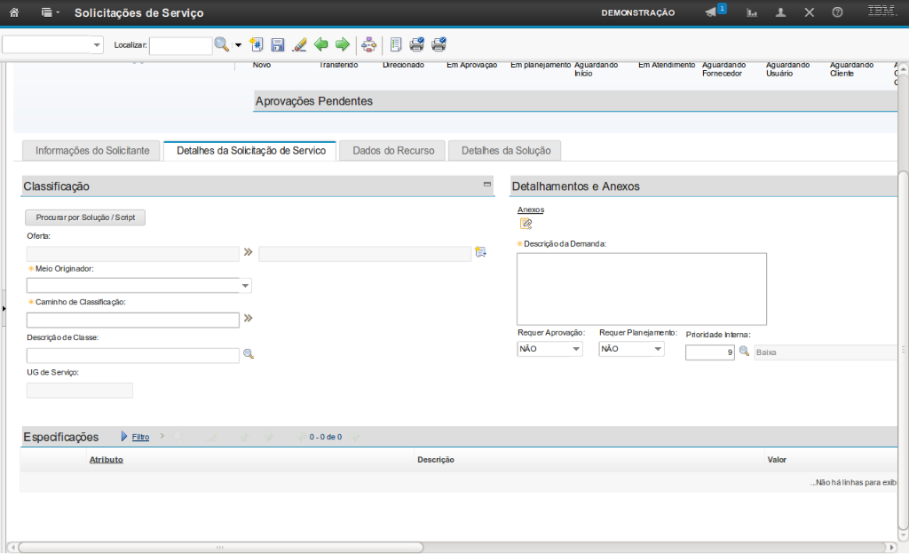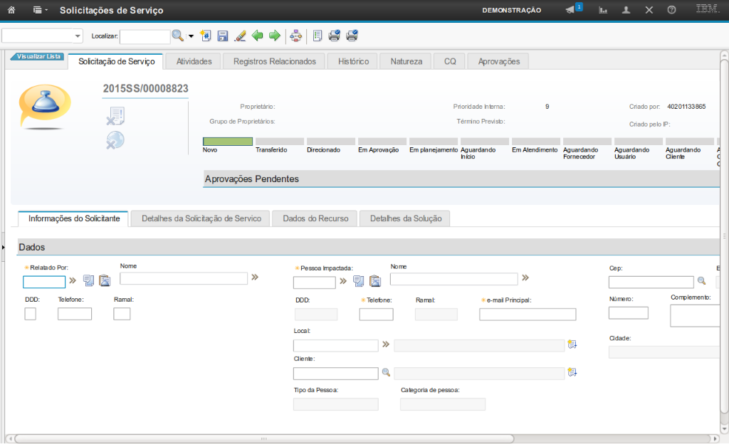 Obs: Essas informações serão preenchidas na fase de atendimento da SS.