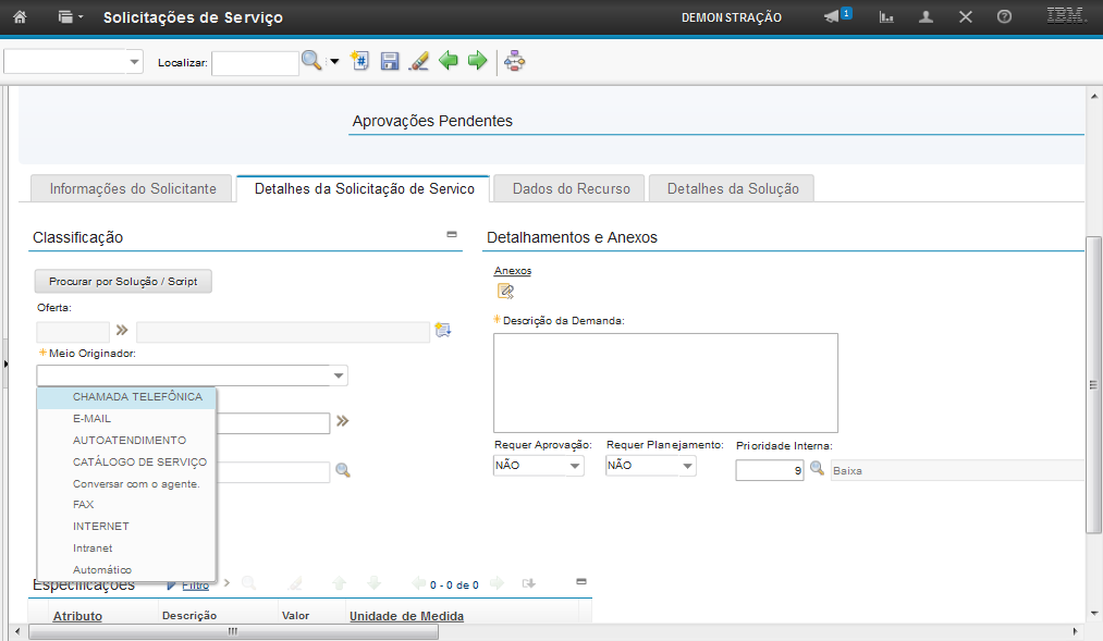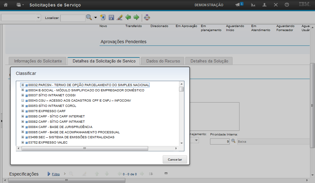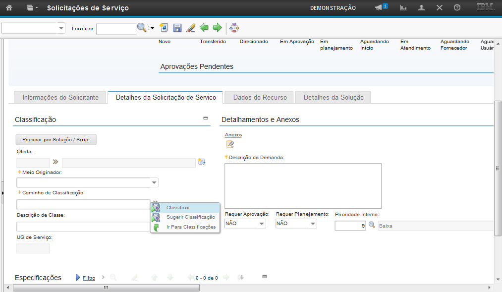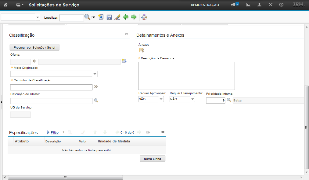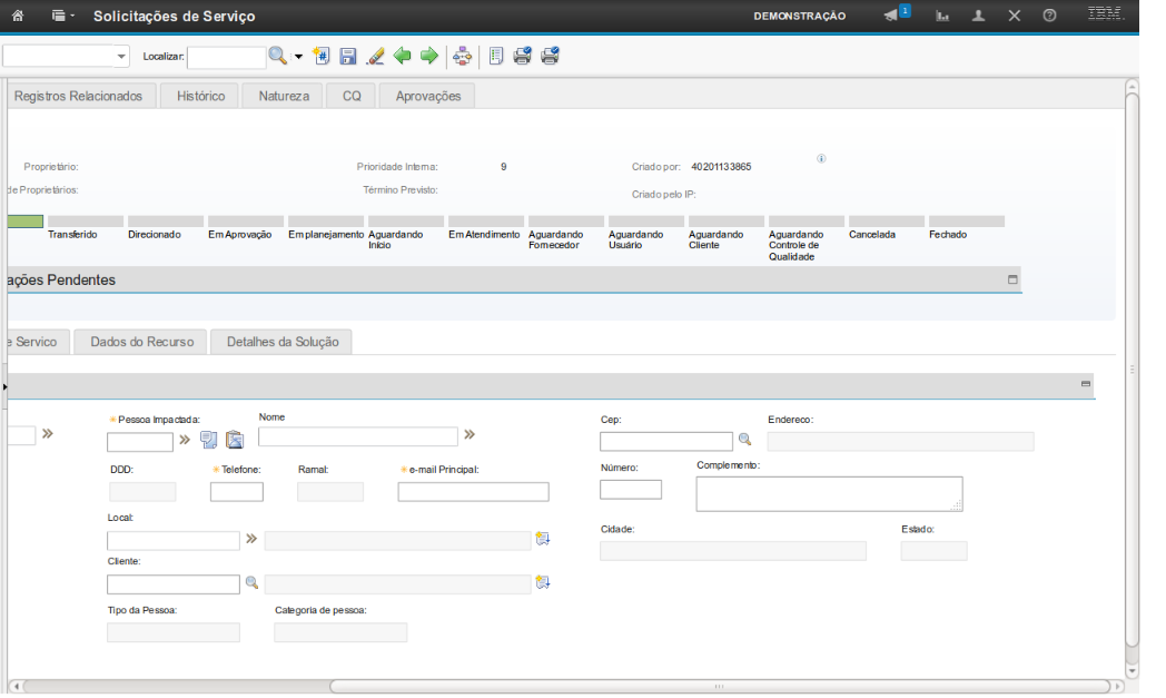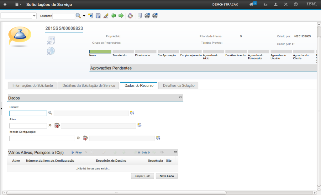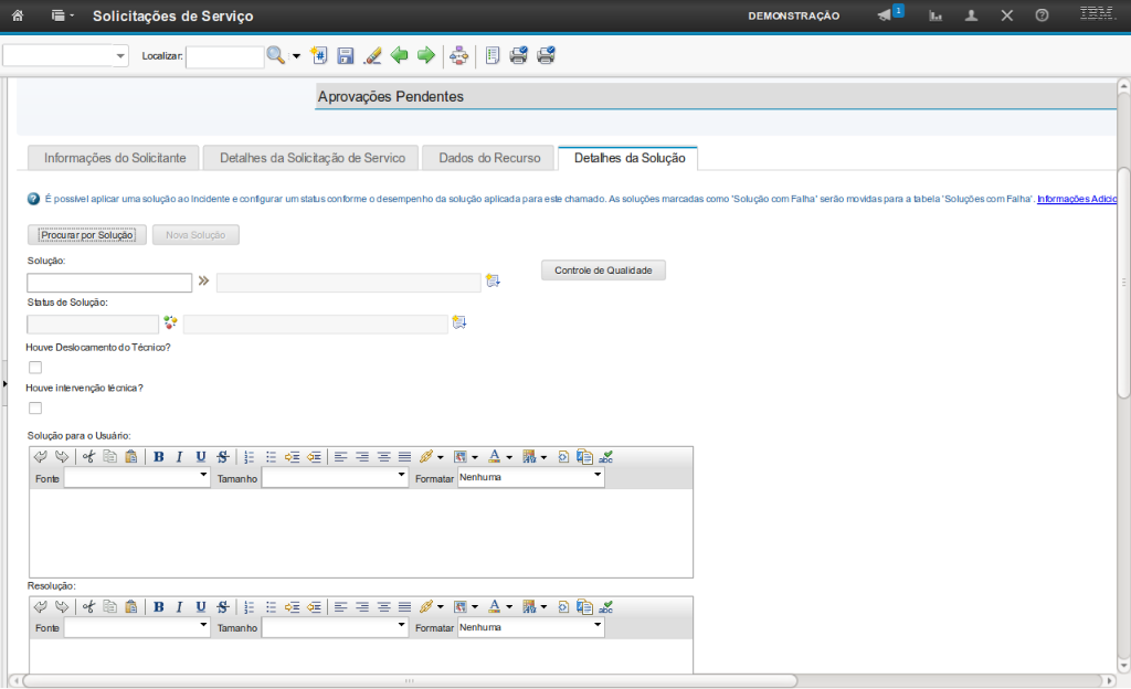 Obs: Os passos sobre como vincular uma solução na SS serão exibidos na demonstração "Atender a Solicitação de Serviço".