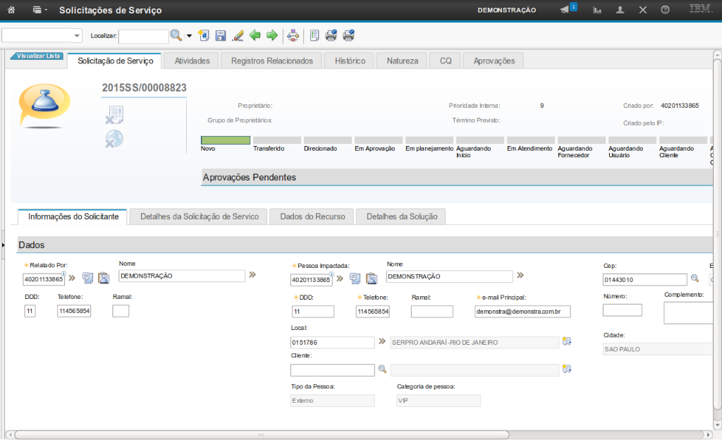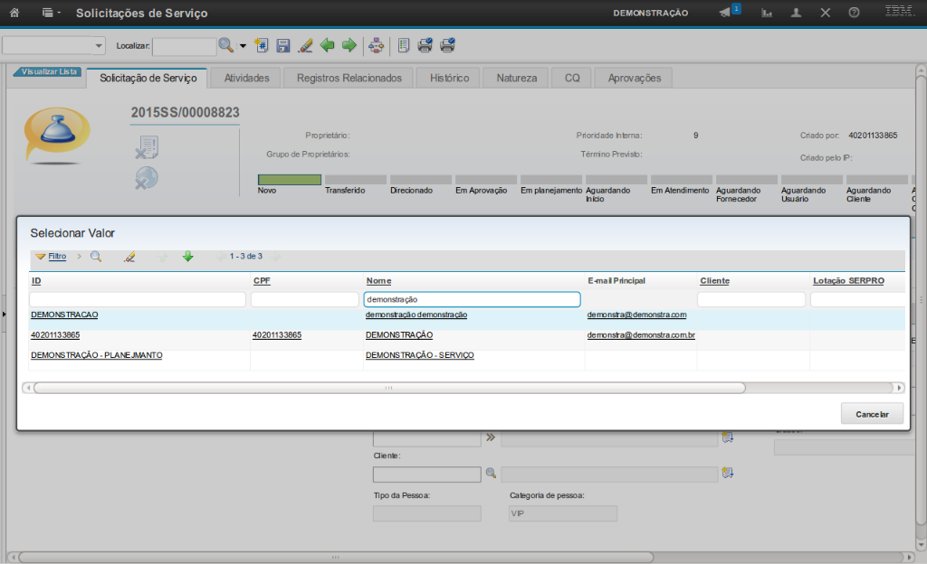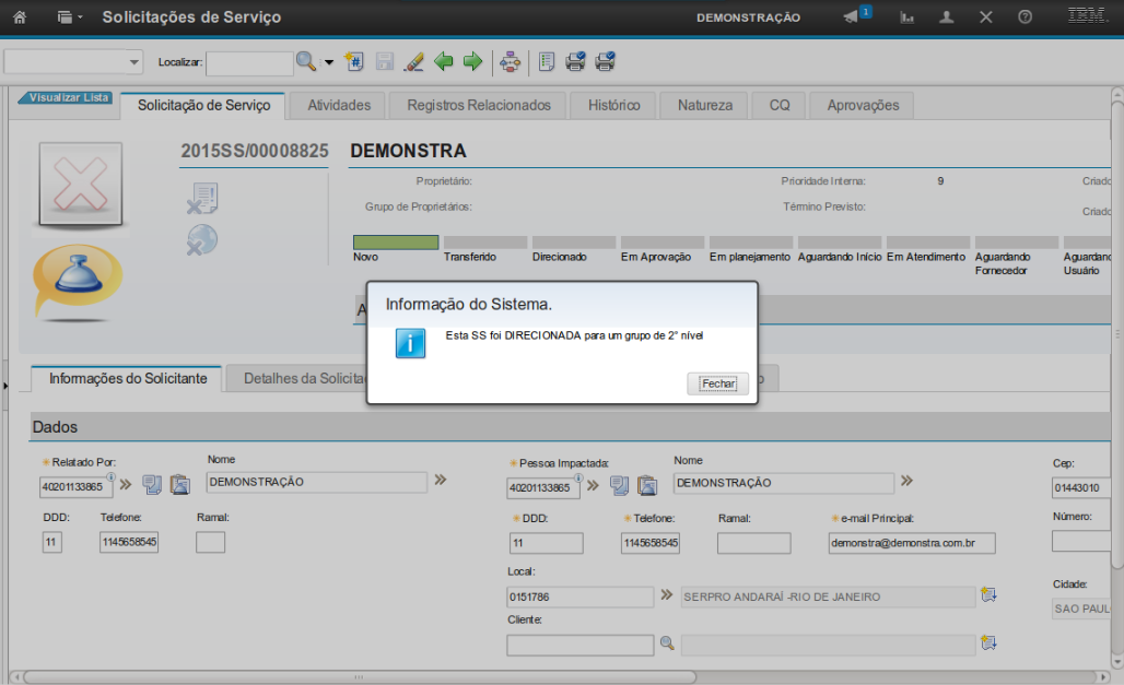 No sistema é possível identificar, além da pessoa que registrou a solicitação, aquela que é impactada pela demanda. Todas as notificações serão enviadas para o e-mail da Pessoa Impactada.