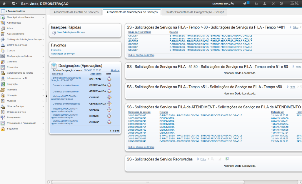 Outra maneira de selecionar a SS a ser atendida é via "portlet" no Centro de Início. Esse procedimento é explicado no tutorial "Como Operar o Centro de Início".