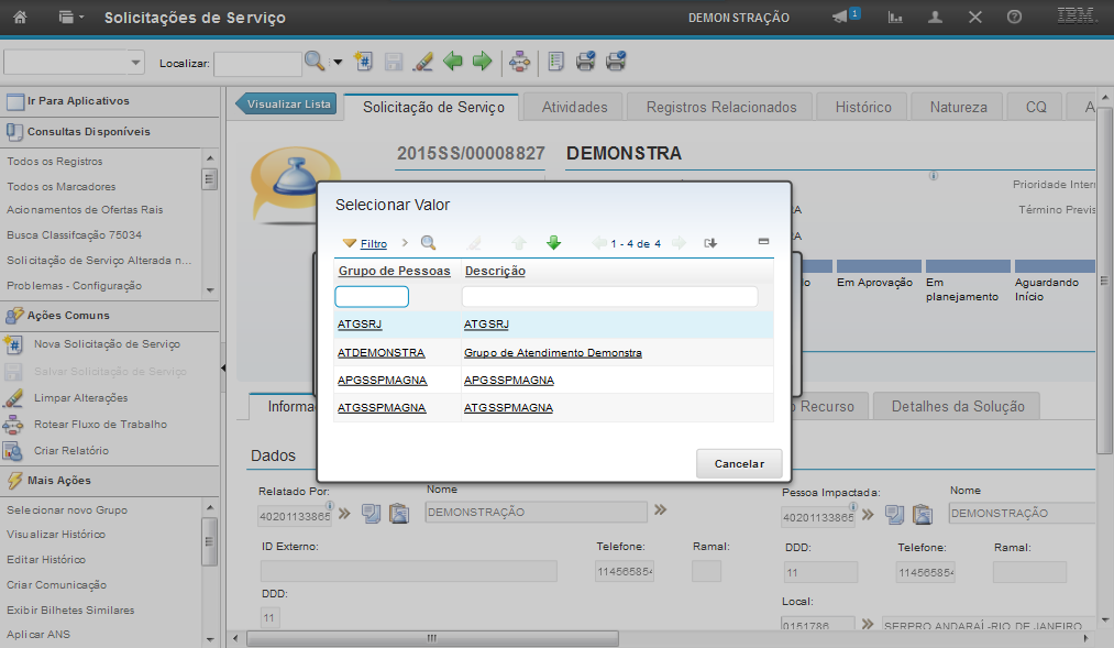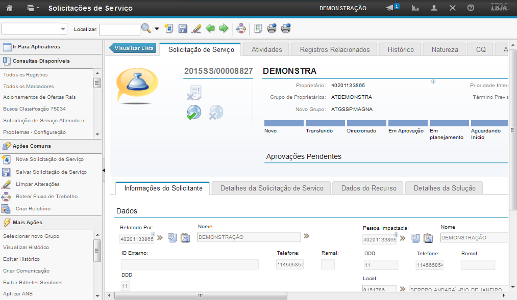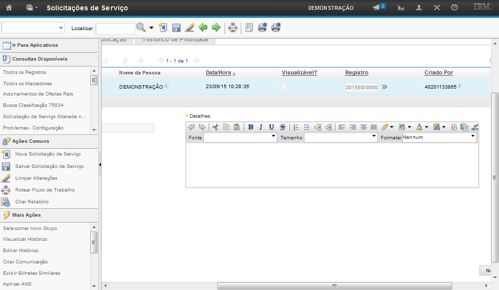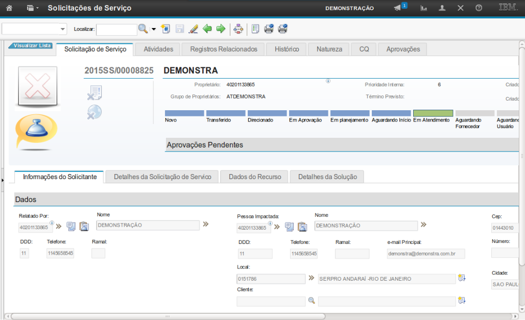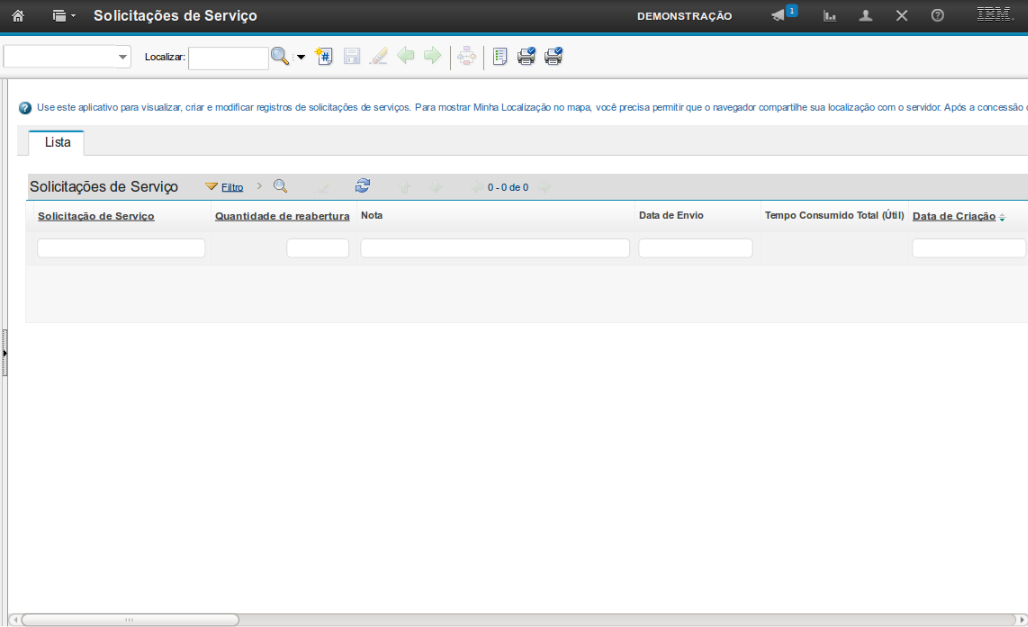 A aplicação de Solicitação de Serviço permite que você, sendo o atendente, realize a busca de uma solicitação para atendê-la e também a criação de uma nova solicitação.