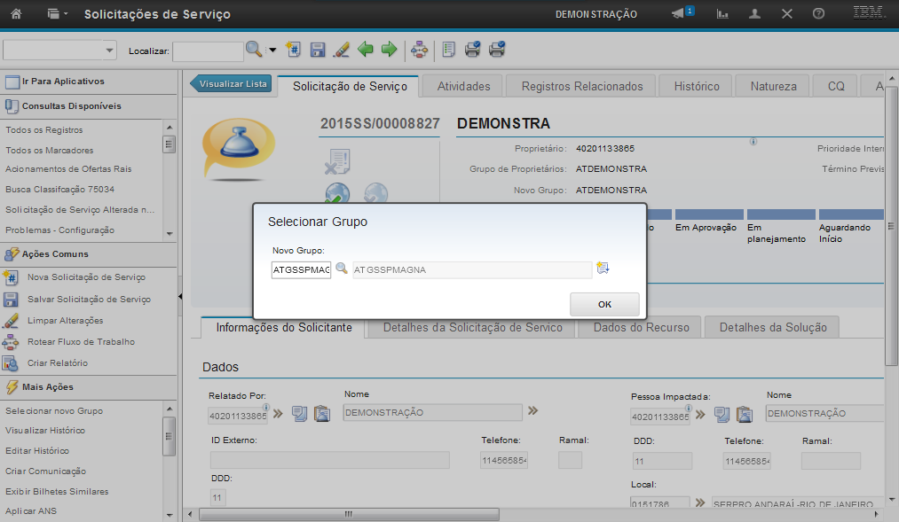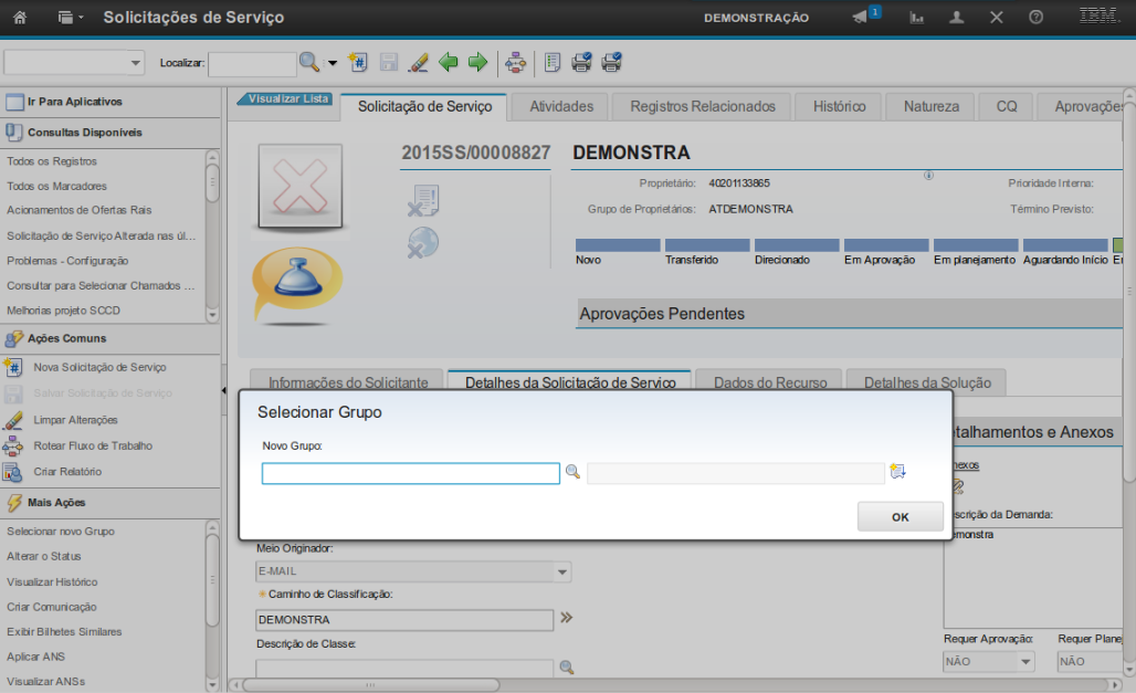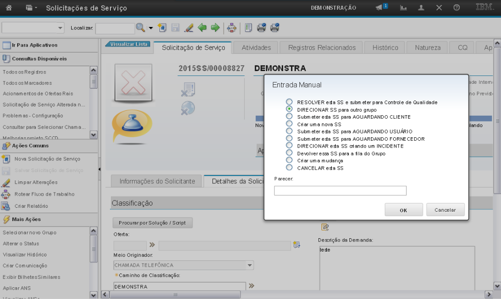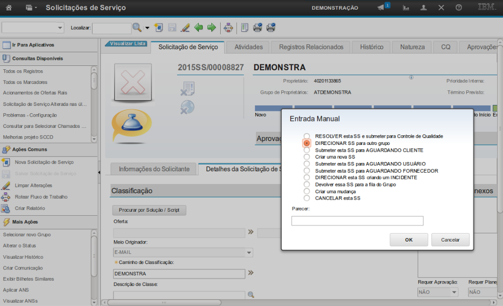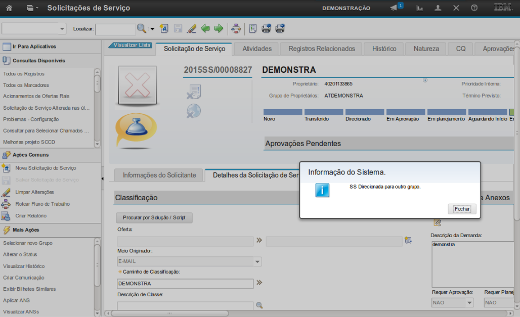 Obs: Você deve "rotear" a SS novamente, para prosseguir com o atendimento.