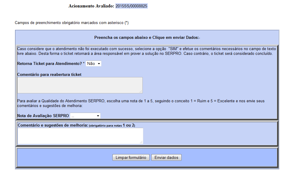 Caso o solicitante avalie que o atendimento não foi de acordo com a sua necessidade, a solicitação irá retornar para atendimento com o status "Direcionada", sendo obrigatório realizar outro atendimento para a SS, até que o solicitante esteja de acordo.