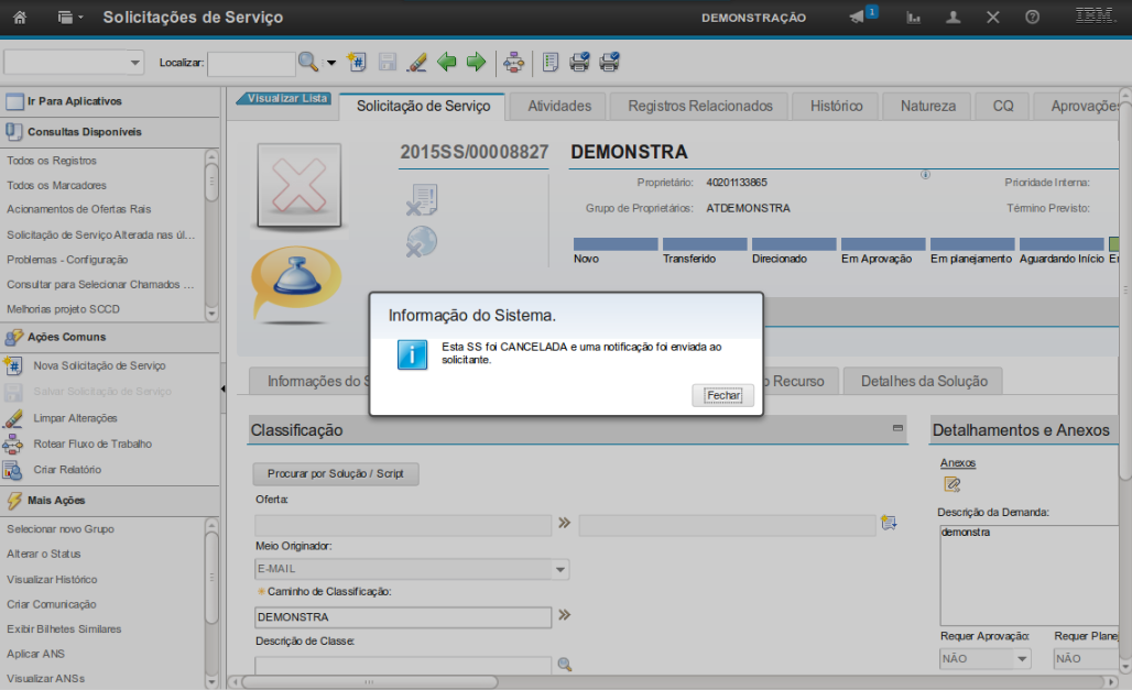 Esta opção permite que você, após identificar a necessidade de cancelamento da SS, cancele-a.