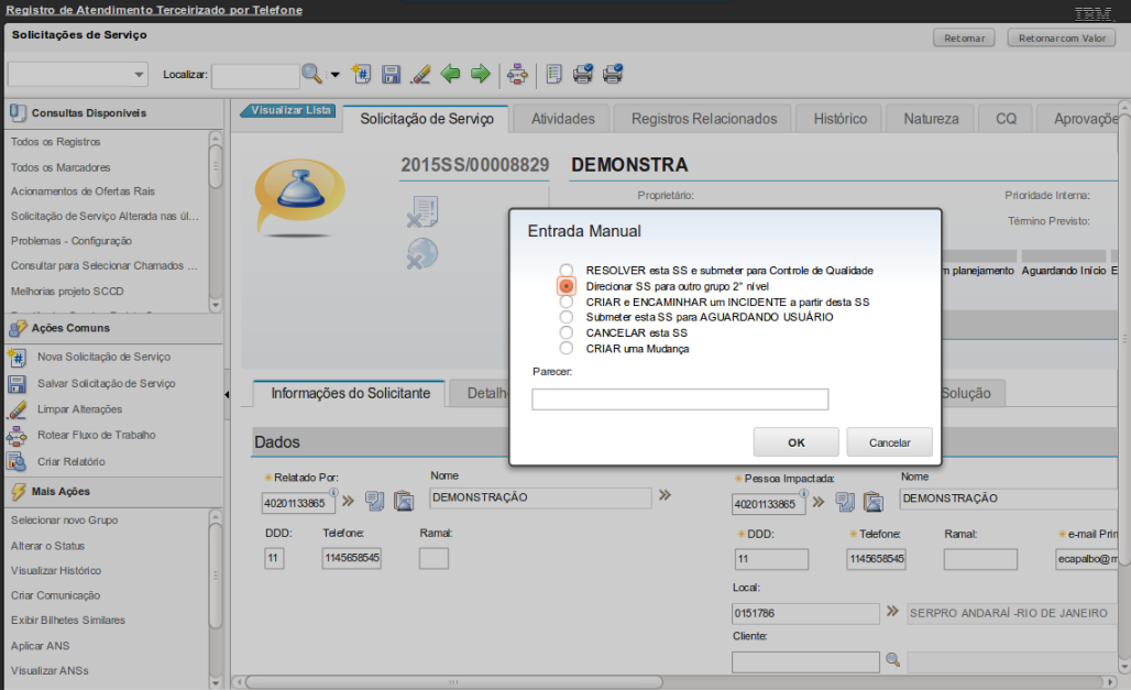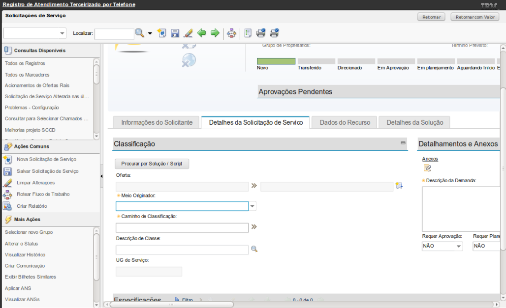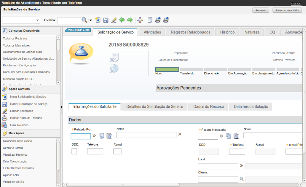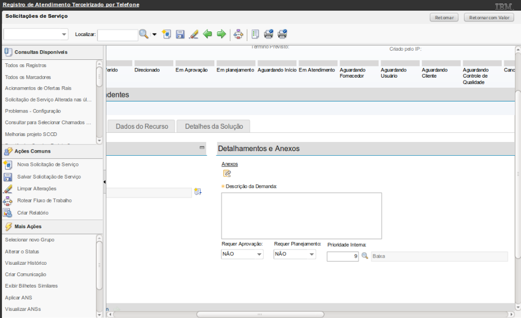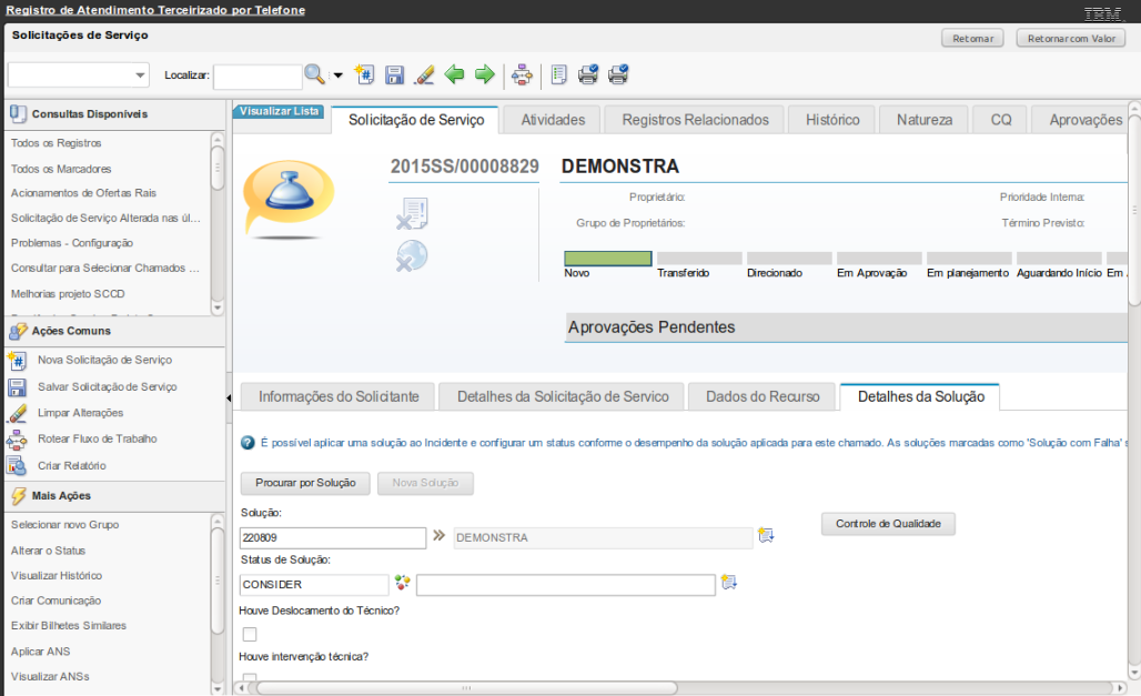 Essas opções são explicadas no tutorial "Atender a Solicitação de Serviço".