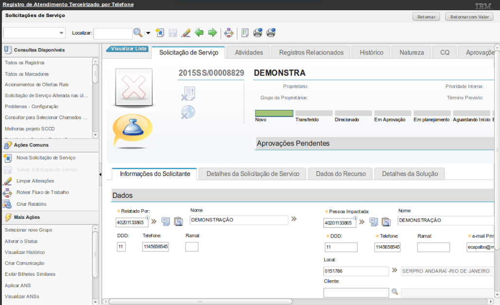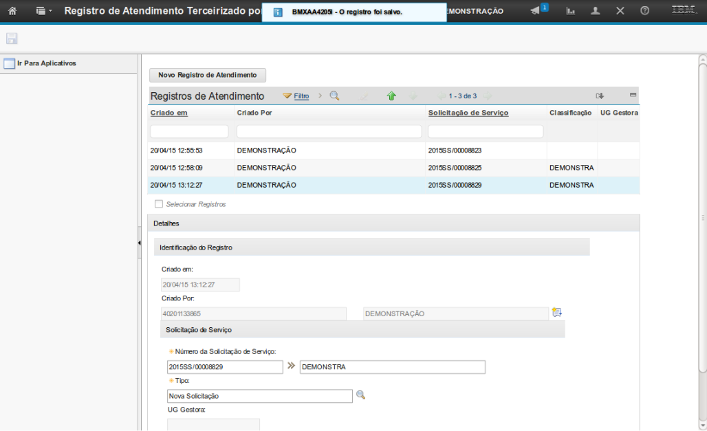 Os detalhes sobre como realizar uma nova Solicitação de Serviço são exibidos na demonstração "Nova Solicitação de Serviço".