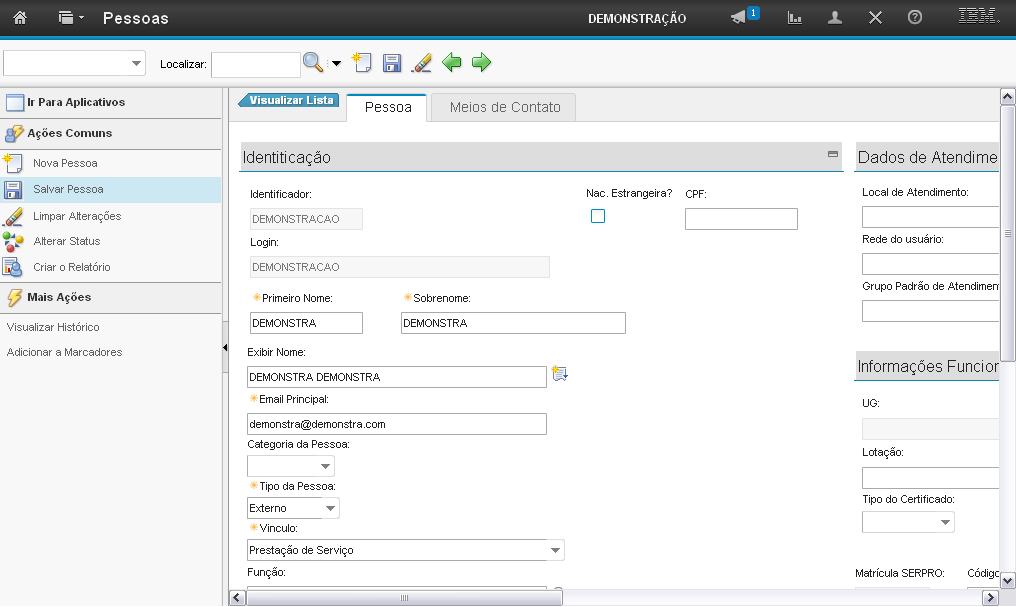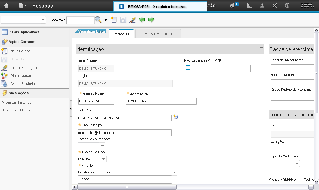 Os passos de como alterar o status da pessoa serão exibidos em outra demonstração.