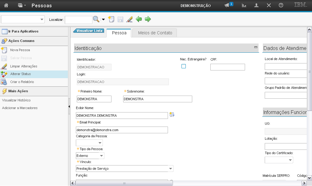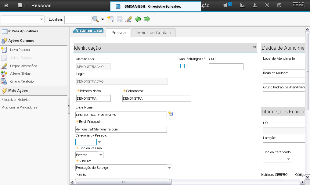 O sistema exibirá a tela de alteração de status da pessoa contendo informações do registro.