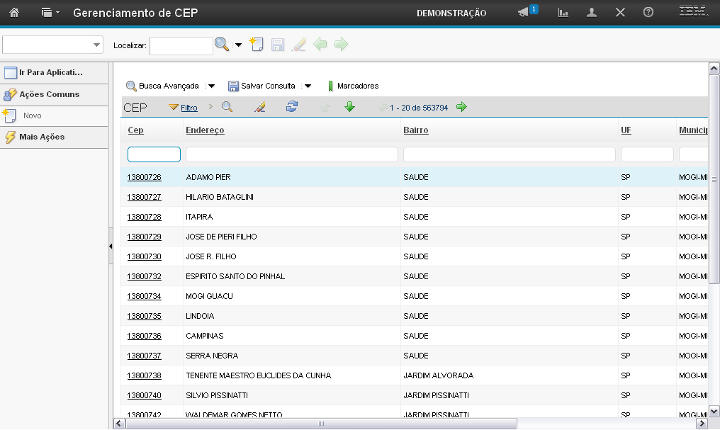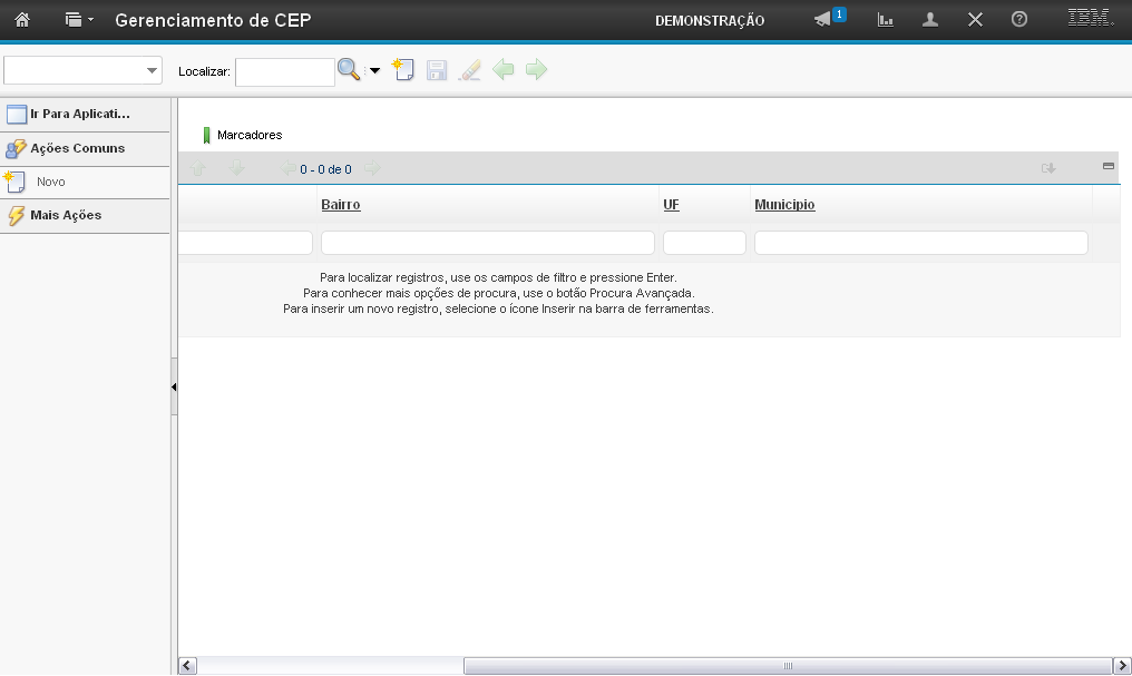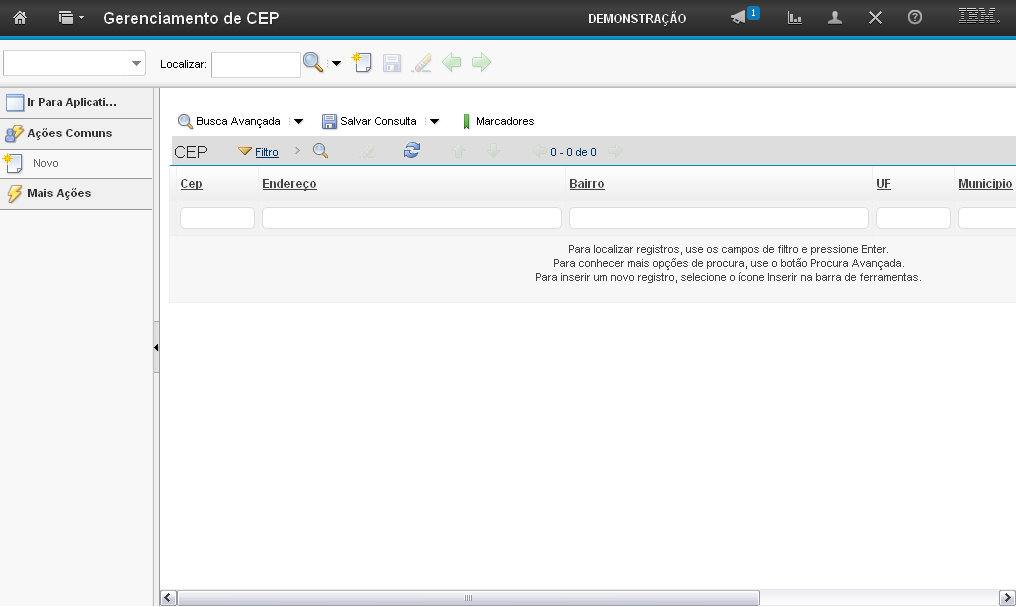 Os passos de cadastro de um CEP serão apresentados na demonstração seguinte.