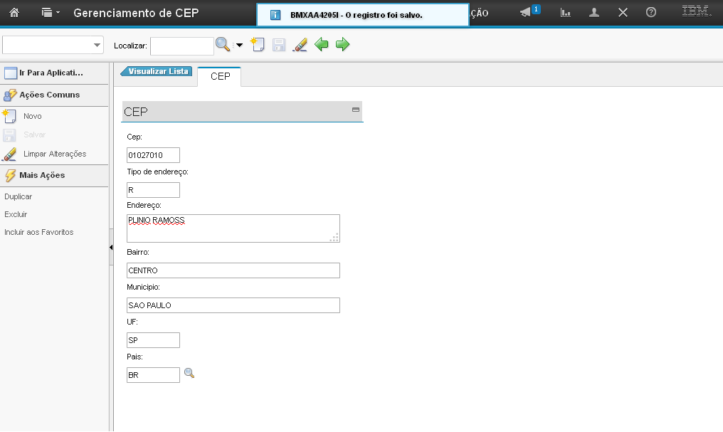 O sistema direcionará você para a tela de cadastro do CEP.