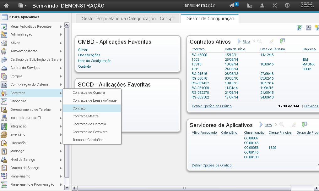 Para acessar a aplicação "Contrato", clique em "Contratos".