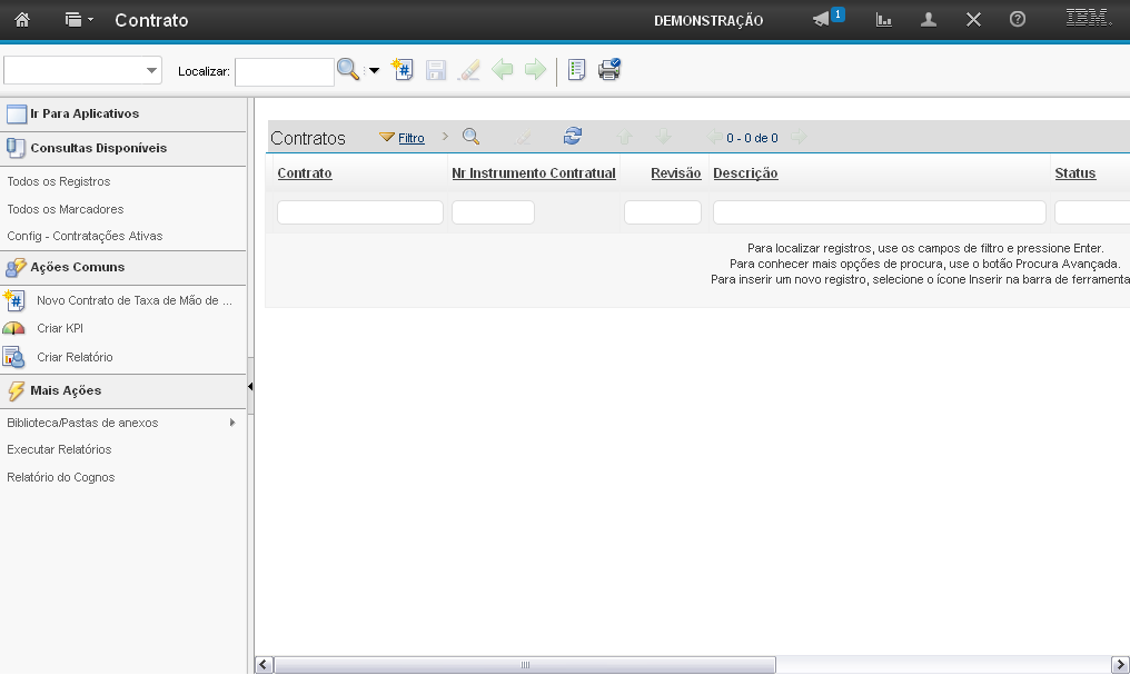 A aba "Contrato" permite que você realize uma busca pelo nome do contrato.