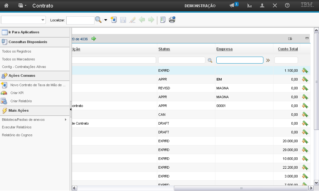 O campo "Custo Total" permite que você realize uma busca pelo custo total do contrato.