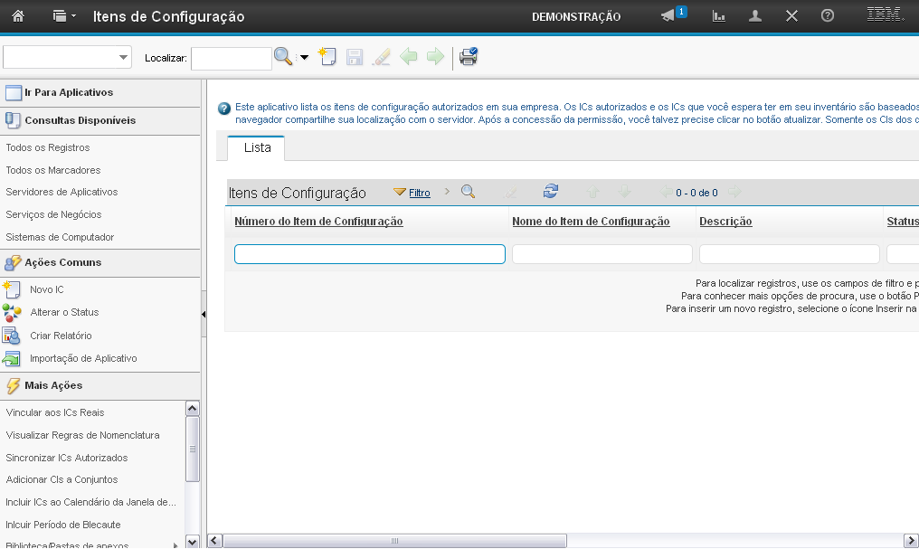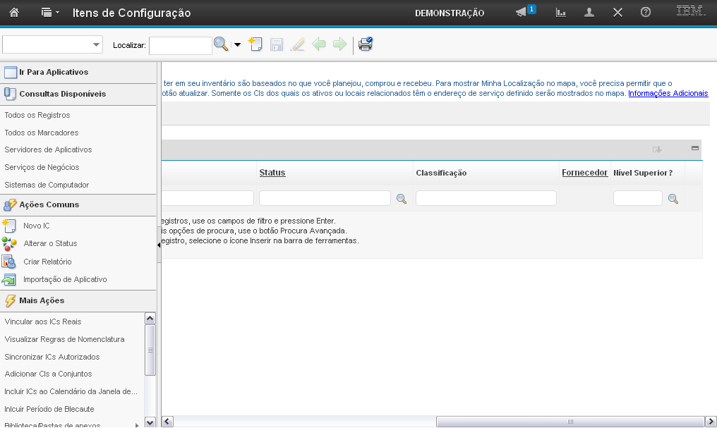 O sistema exibe campos de filtros de pesquisa, possibilitando que você realize uma pesquisa por Itens de Configuração mais detalhada.