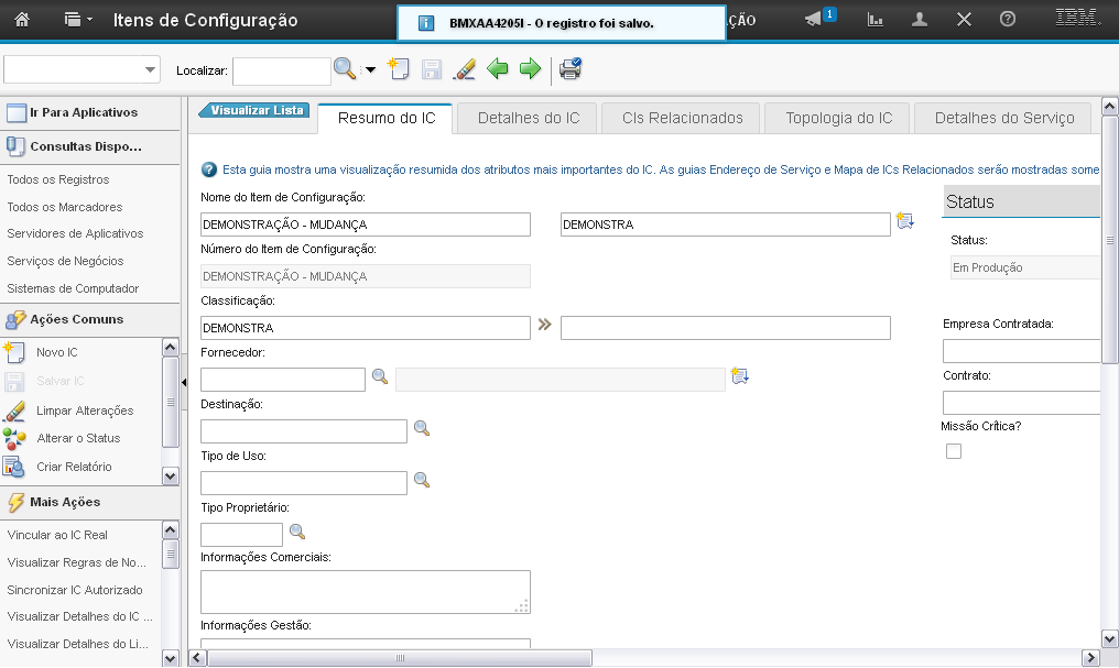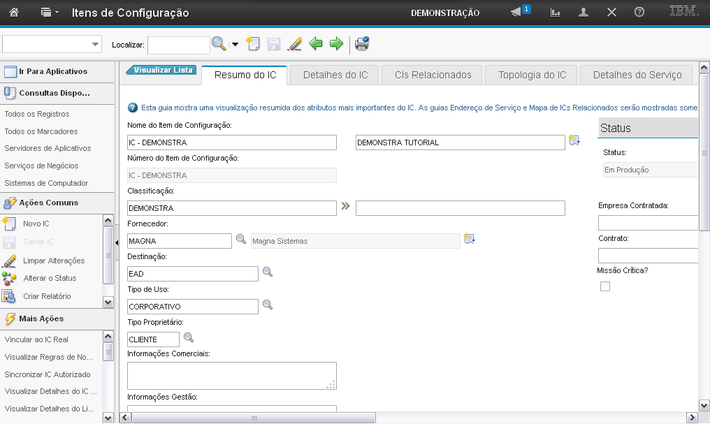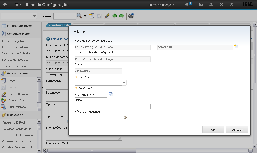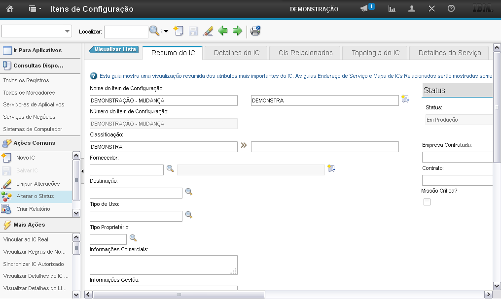 Esta é a demonstração sobre como "Alterar o Status do Item de Configuração" (IC).Comece a editar.