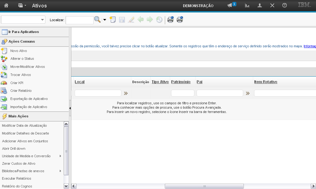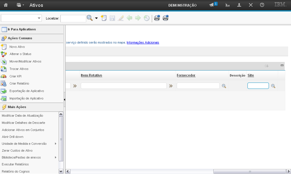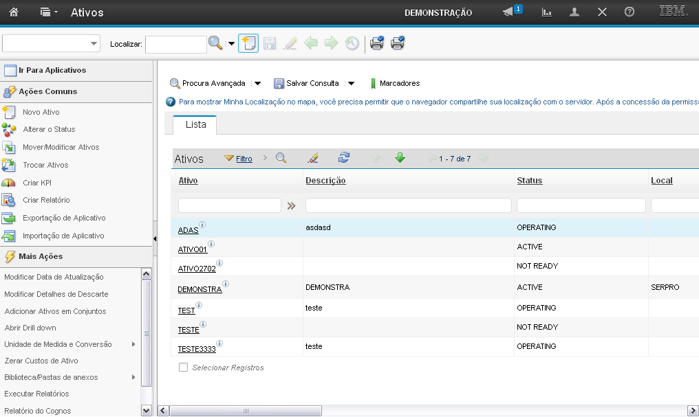 O campo "Local" permite que você realize uma busca pelo local do ativo.