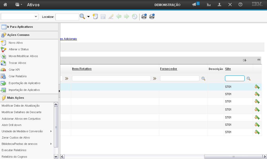 Para acessar a aplicação "Ativos", selecione a opção "Ativos".
