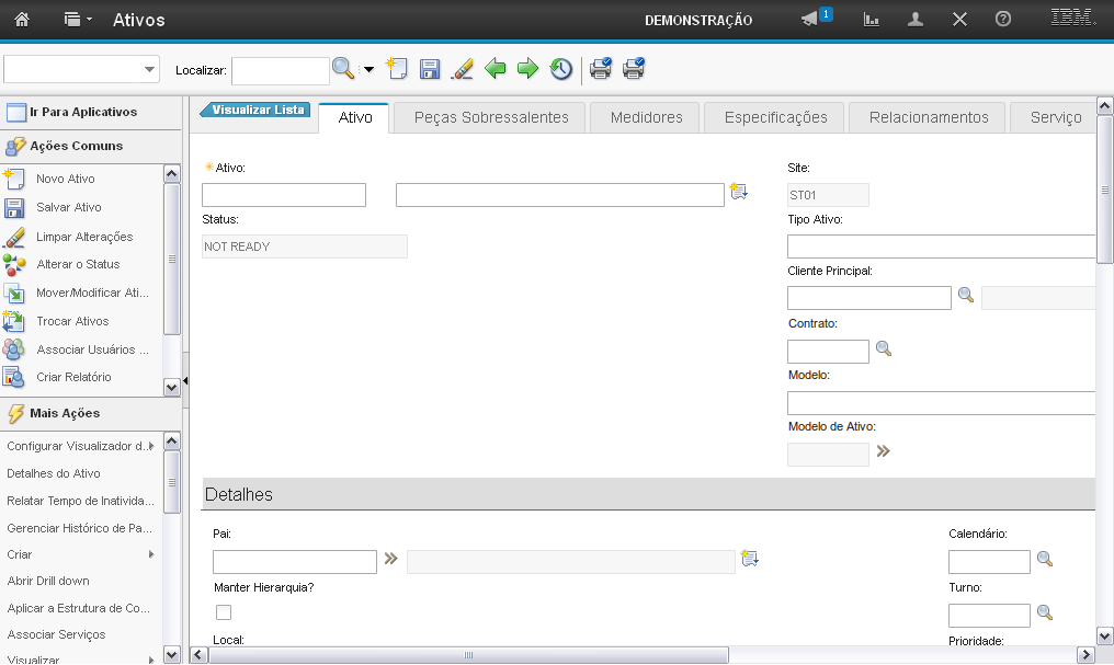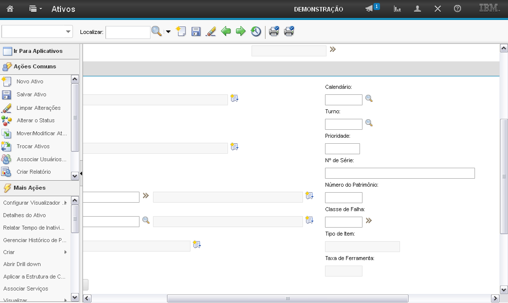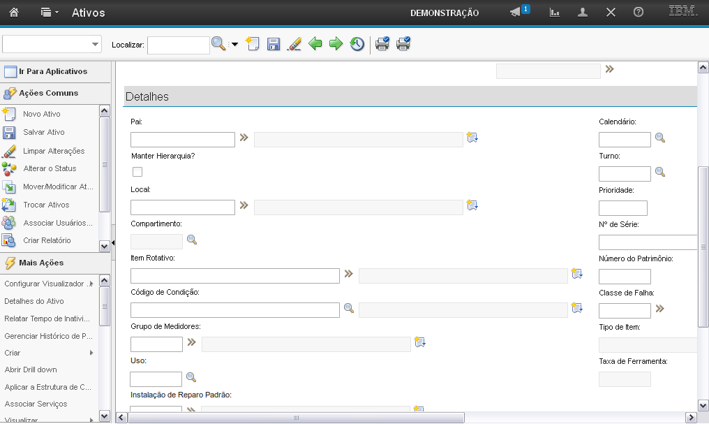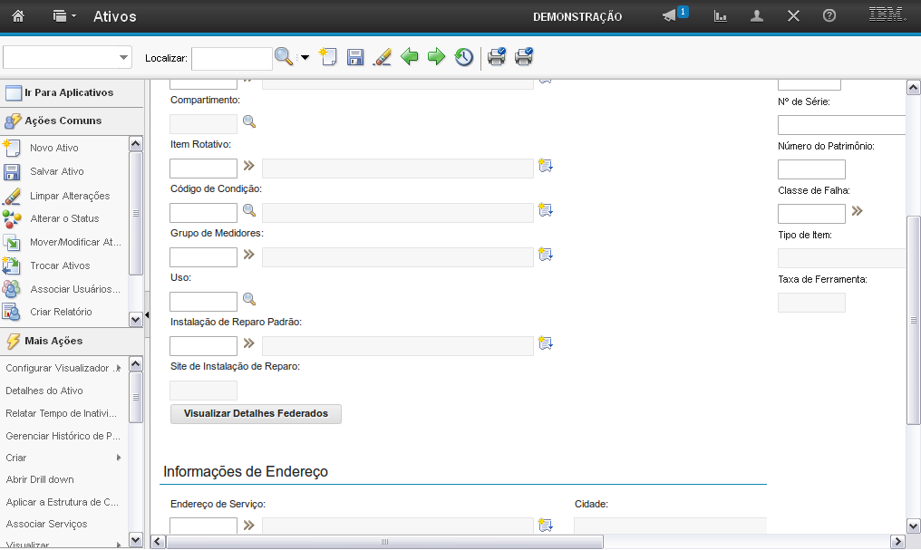 O campo "Ativo" permite que você informe o número do ativo.
