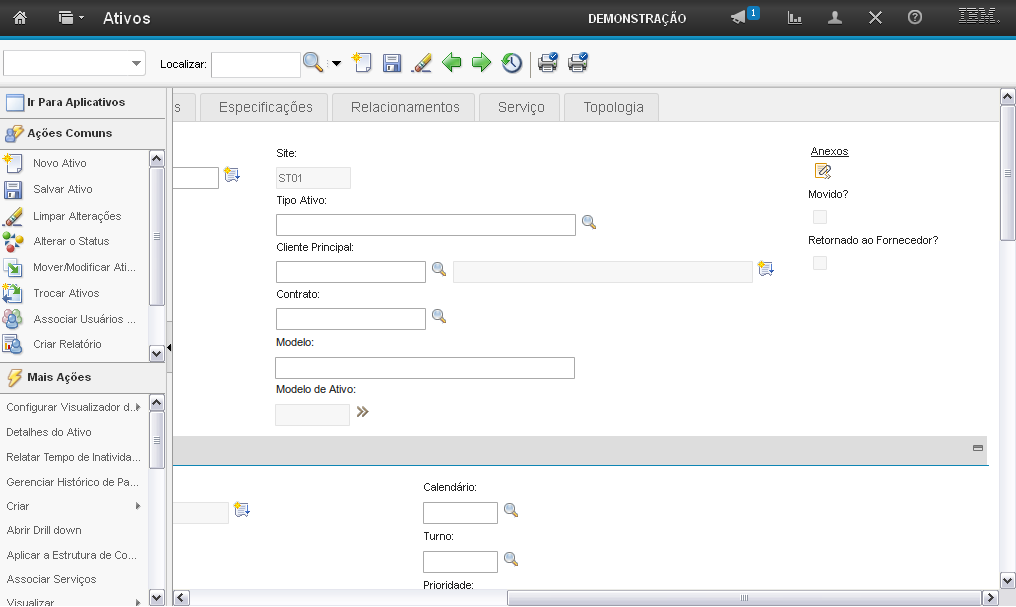 O campo "Anexos" permite que você visualize ou insira anexos ao Ativo.