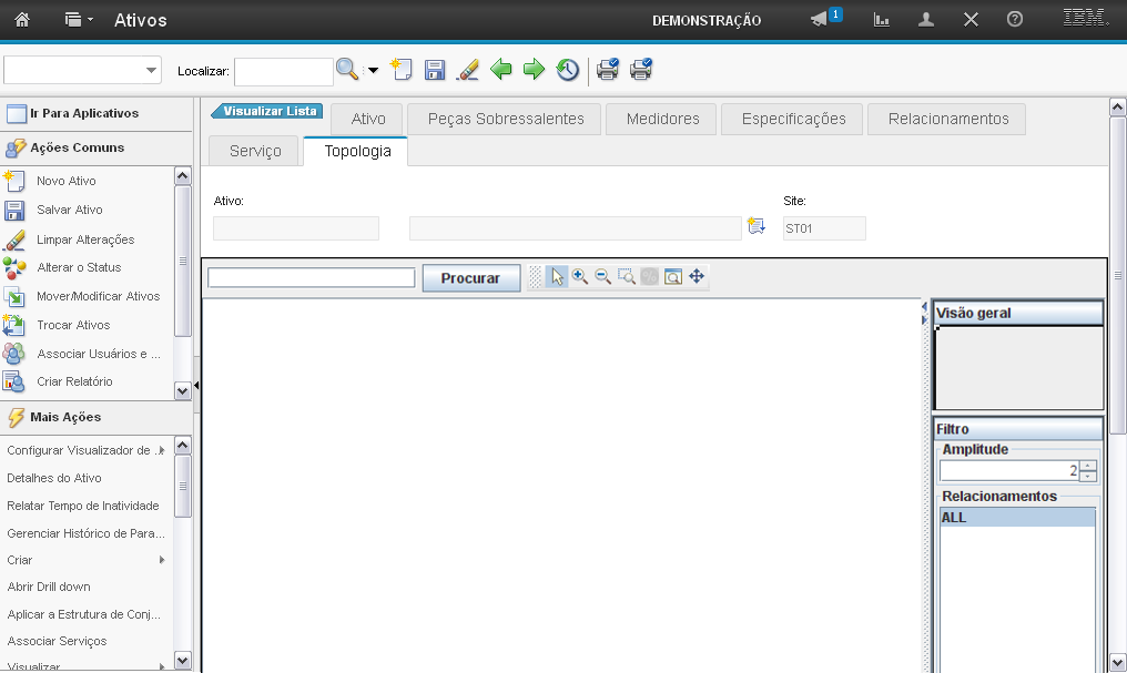 Esta área exibe o gráfico da topologia do Ativo.