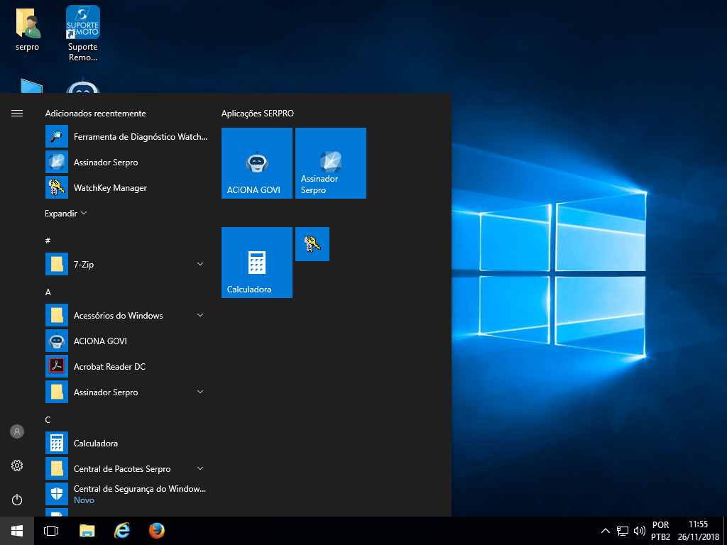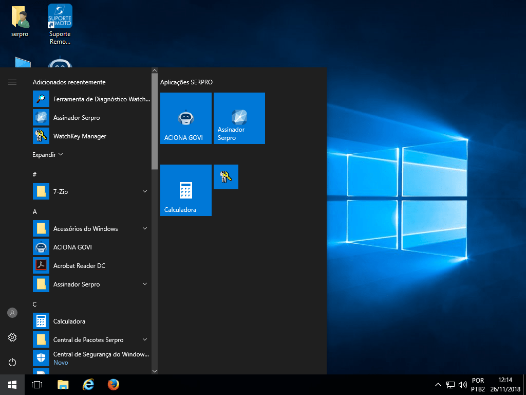 Para ter acesso aos aplicativos, abra o menu Iniciar.