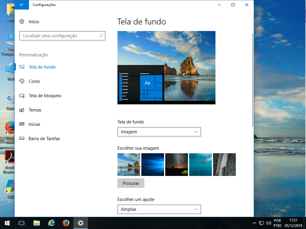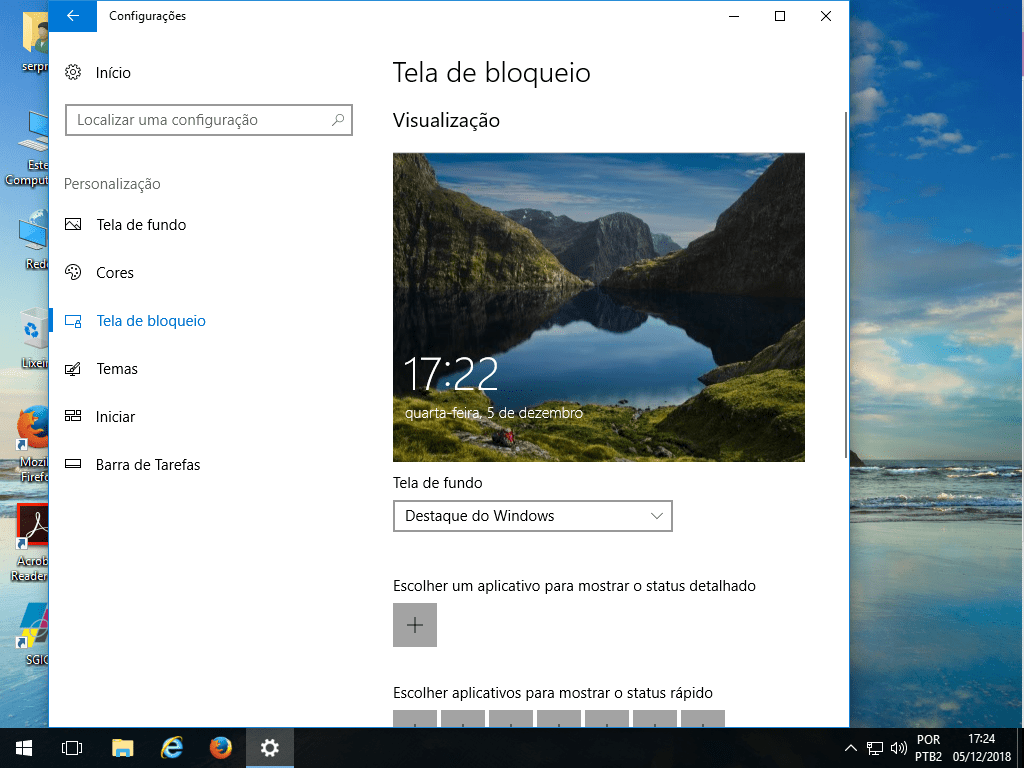 Em Tela de bloqueio poderá ser alterada a imagem de fundo da tela de bloqueio (logon).
