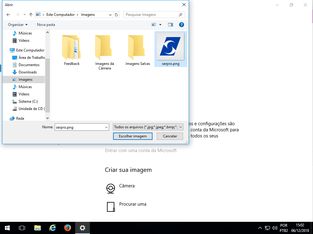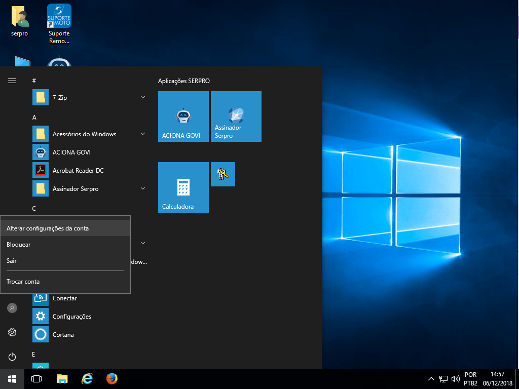 Para alterar a imagem da conta, acesse o menu Configurações.