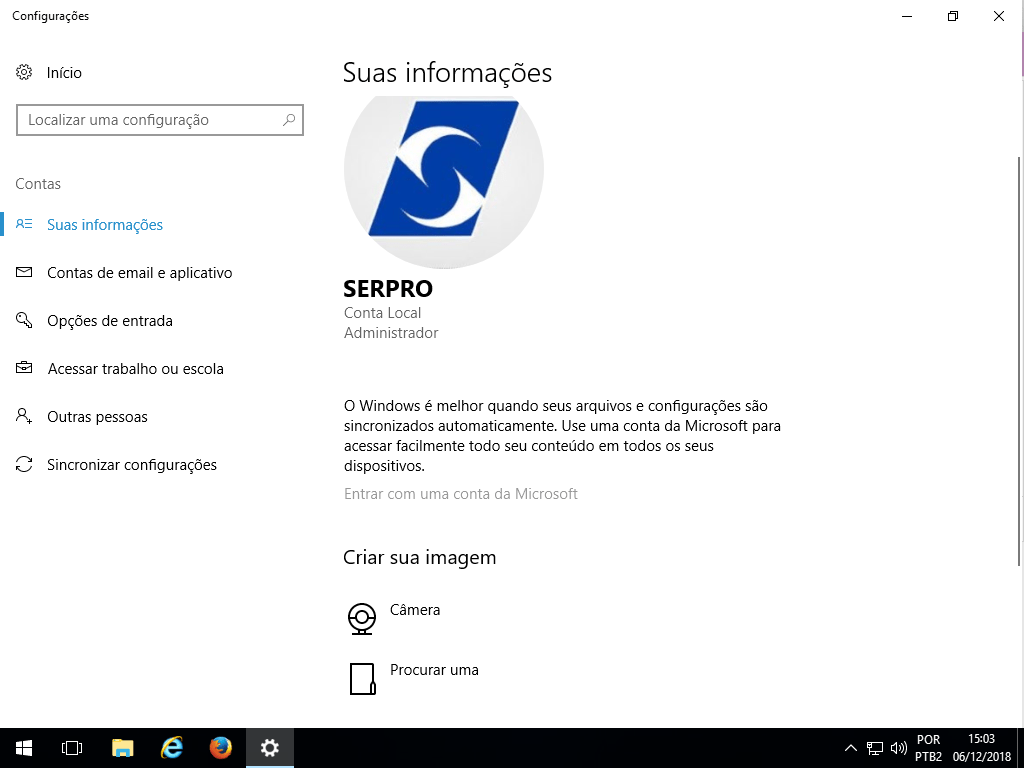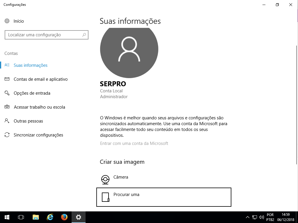 Em Contas é possível alterar outras configurações. Observe que também é possível utilizar uma conta da Microsoft para integrar com dispositivos móveis.