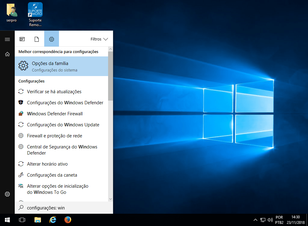 Ao utilizar este filtro, apenas os resultados de buscas relacionadas às configurações do Windows 10 serão exibidos.
