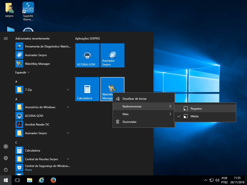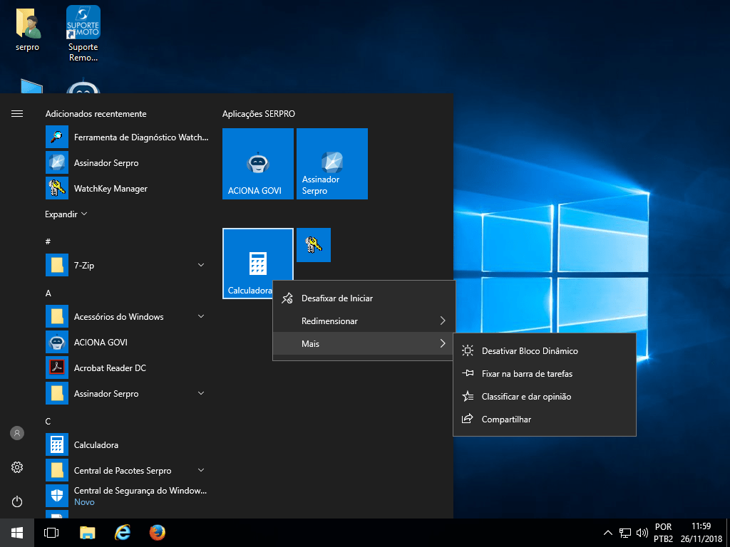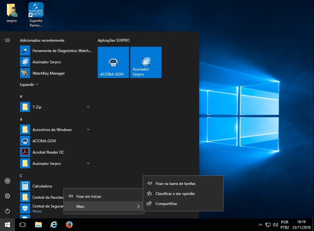 Escolha entre fixar na tela inicial ou na barra de tarefas.