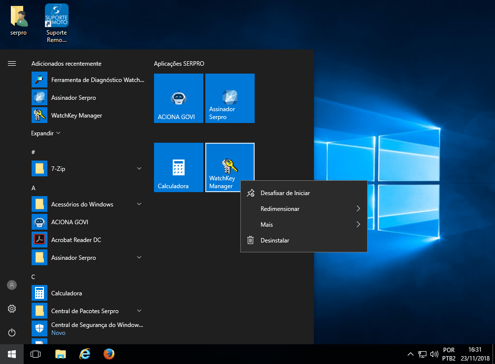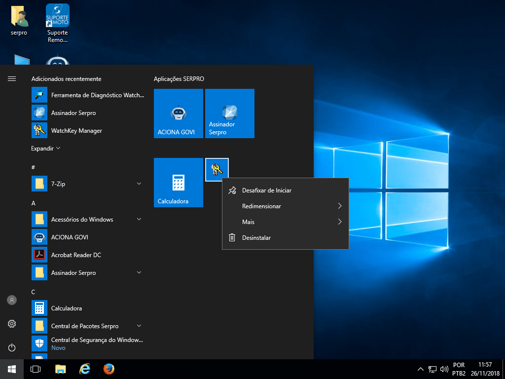 Alguns aplicativos podem ser desinstalados por meio da tela inicial.