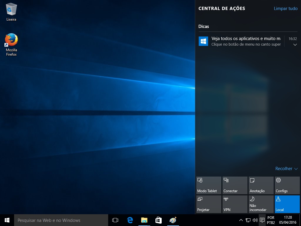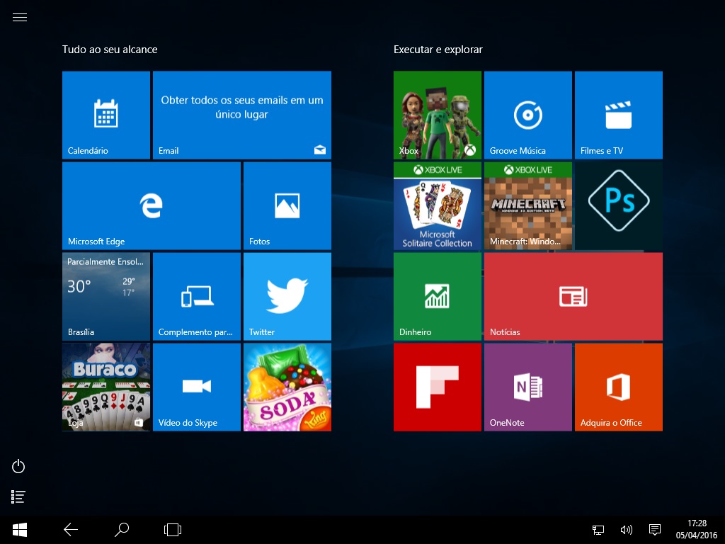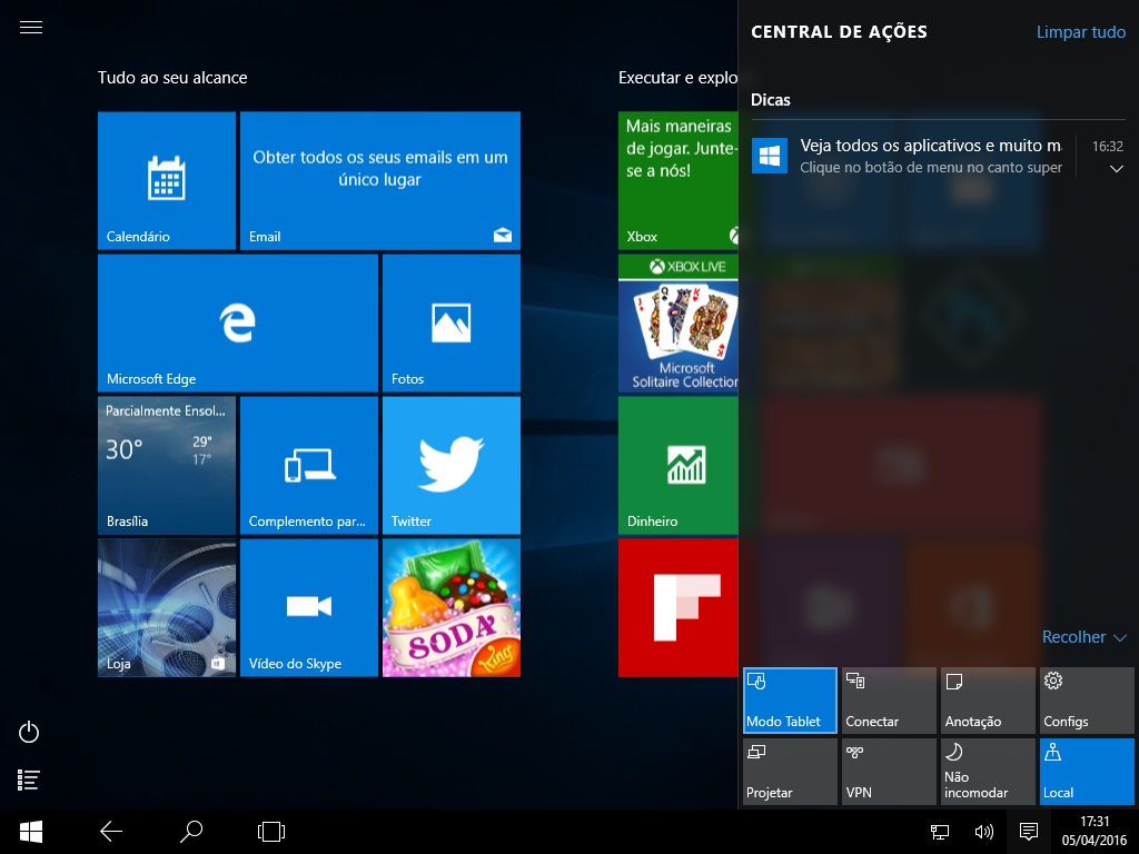 No Windows 10 é possível trabalhar com a tela inicial em modo de tela cheia, o chamado Modo Tablet.